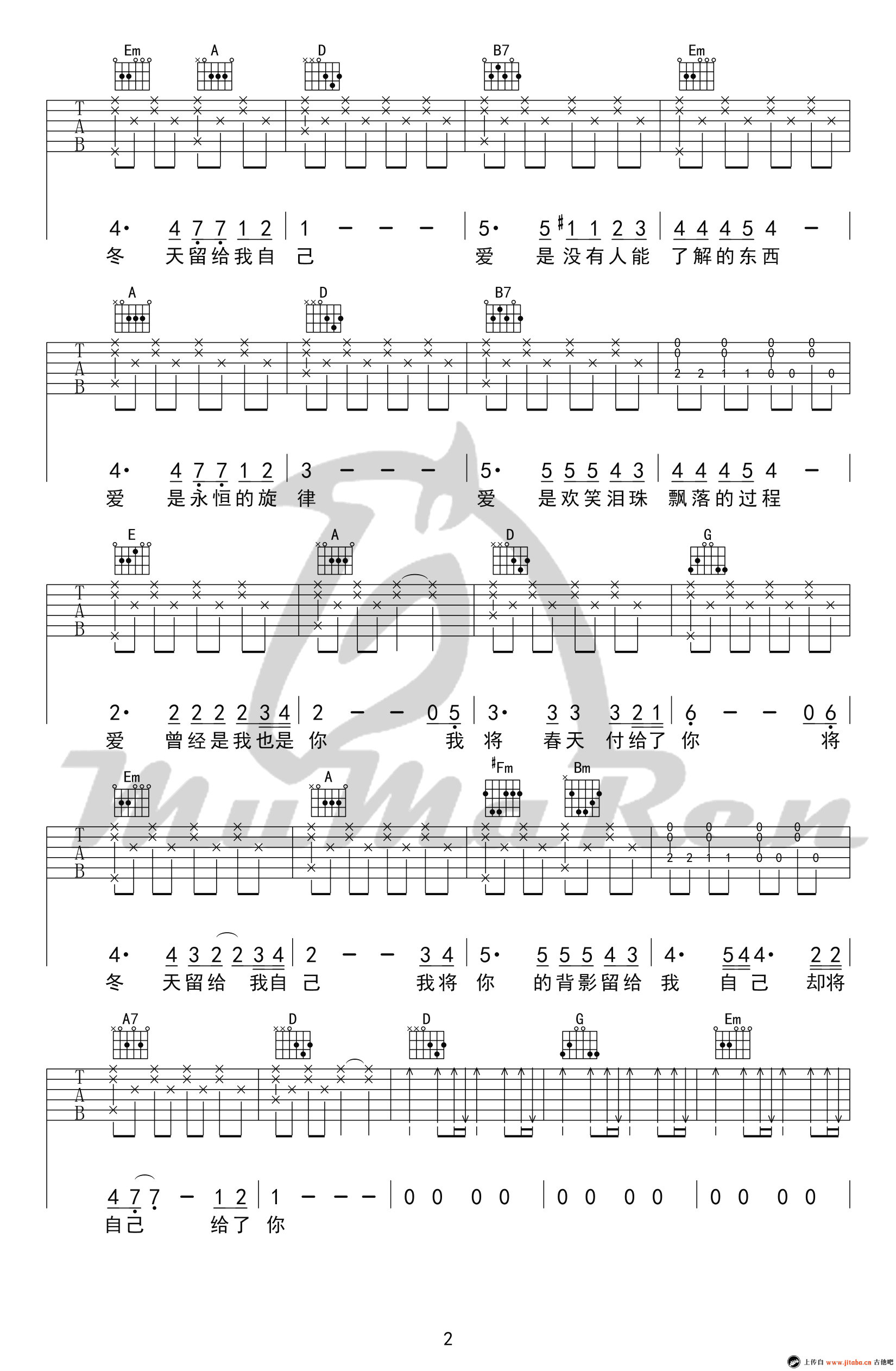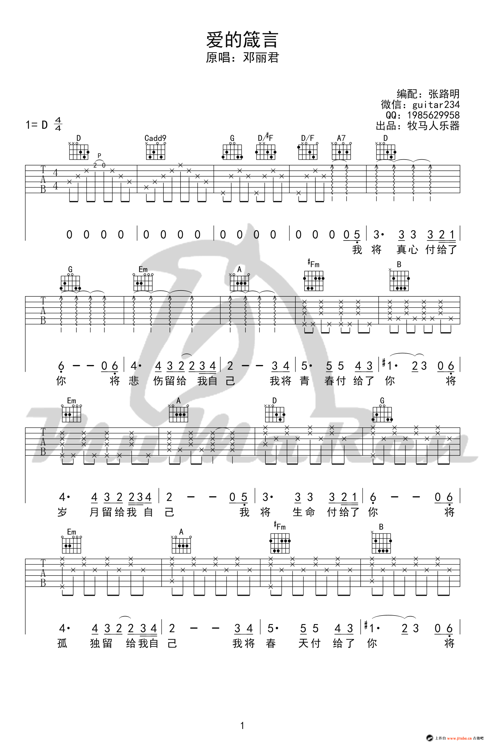 《罗大佑《爱的箴言吉他谱》(D调)》内容来自于互联网,不能保证内容的准确性与完整性,仅供学习交流欣赏,请勿用于其它用途,内容版权归原作者及来源网站所有,如有侵犯到您的权益请来信告知,我们将及时删除。