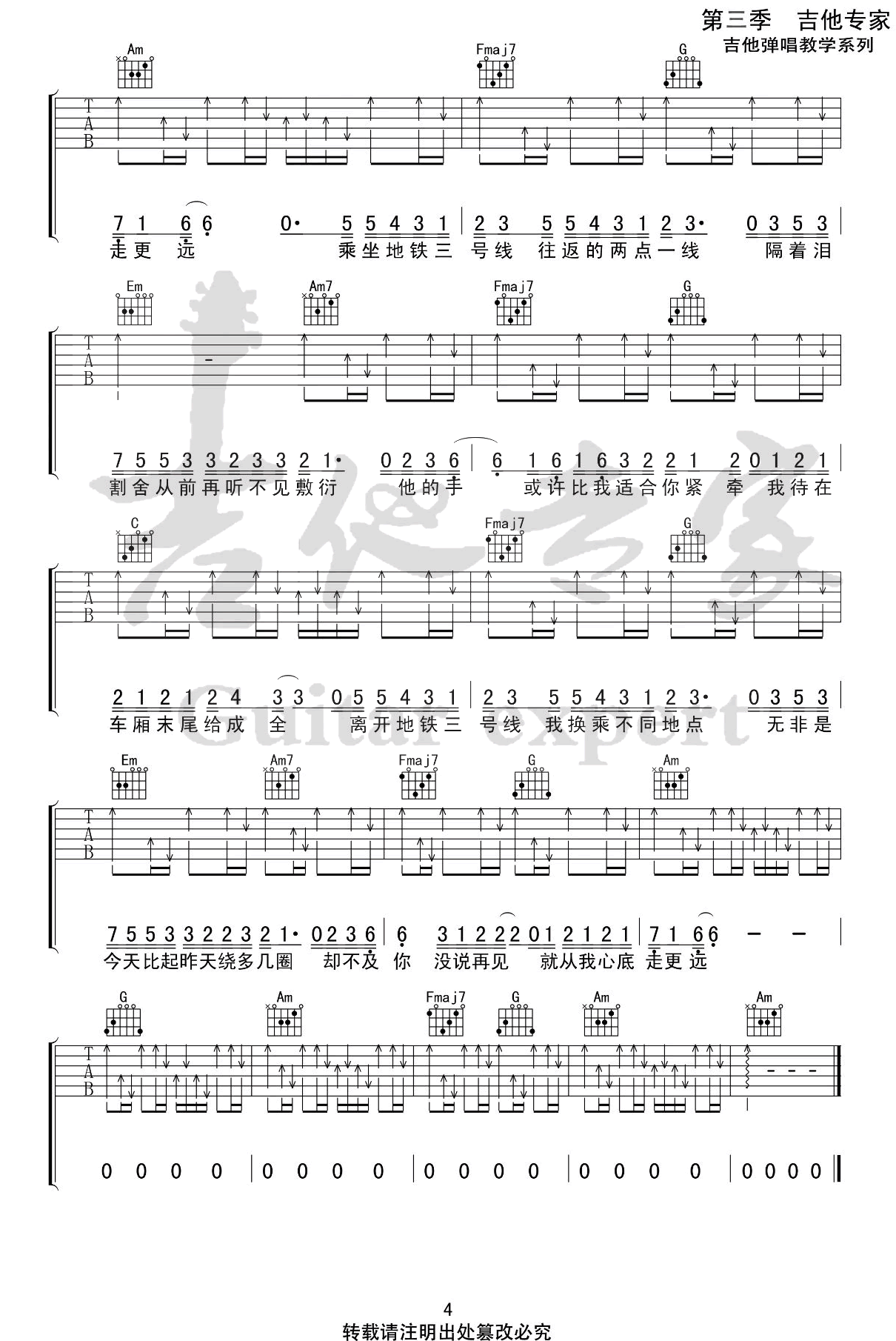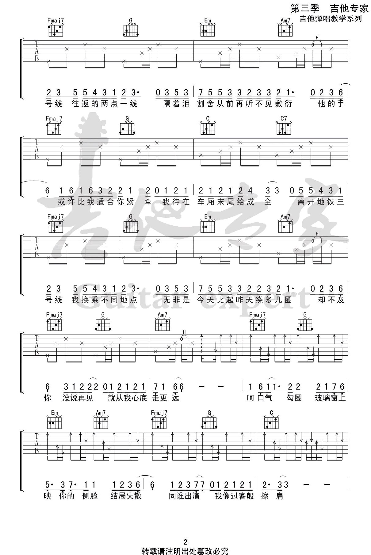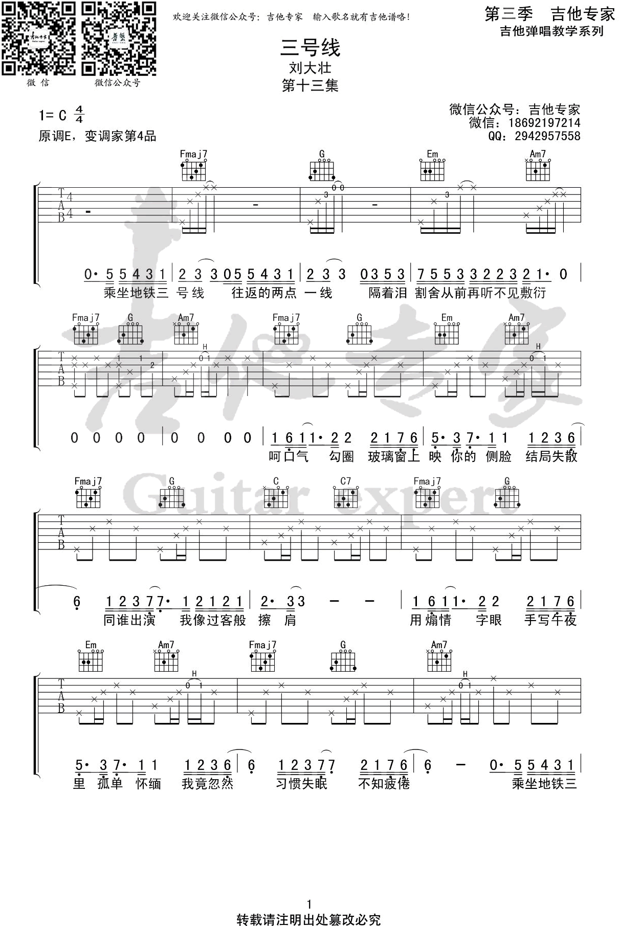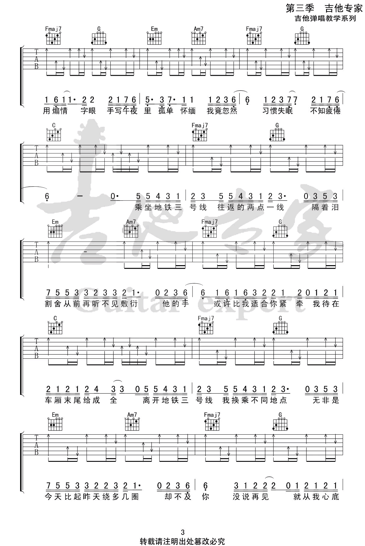 《刘大壮《三号线吉他谱》(C调)》内容来自于互联网,不能保证内容的准确性与完整性,仅供学习交流欣赏,请勿用于其它用途,内容版权归原作者及来源网站所有,如有侵犯到您的权益请来信告知,我们将及时删除。