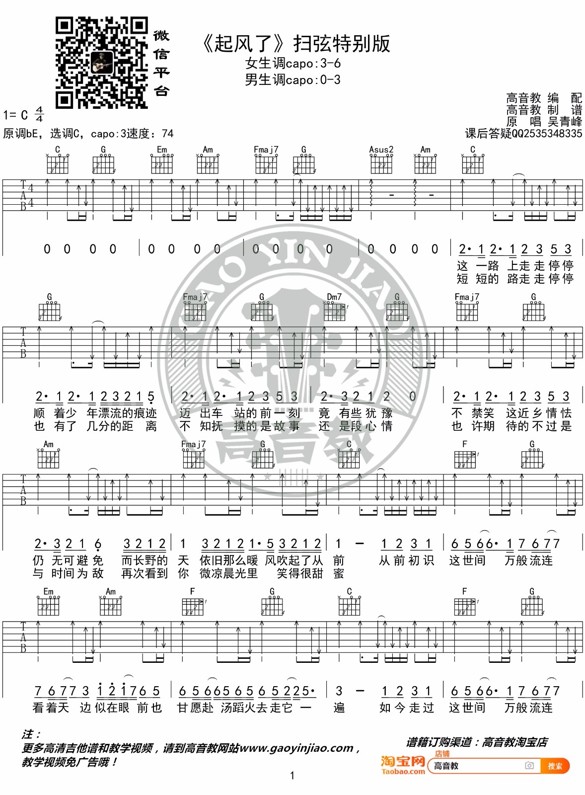 《起风了》由吴青峰演唱,以D调为主,C为副调,表达了对逝去时光的怀念与对未来的期许。弹奏以扫弦为主,节奏型简单,和弦清晰,适合初学者练习。曲风抒情,前奏完整,旋律优美,情感真挚,易于引发共鸣。