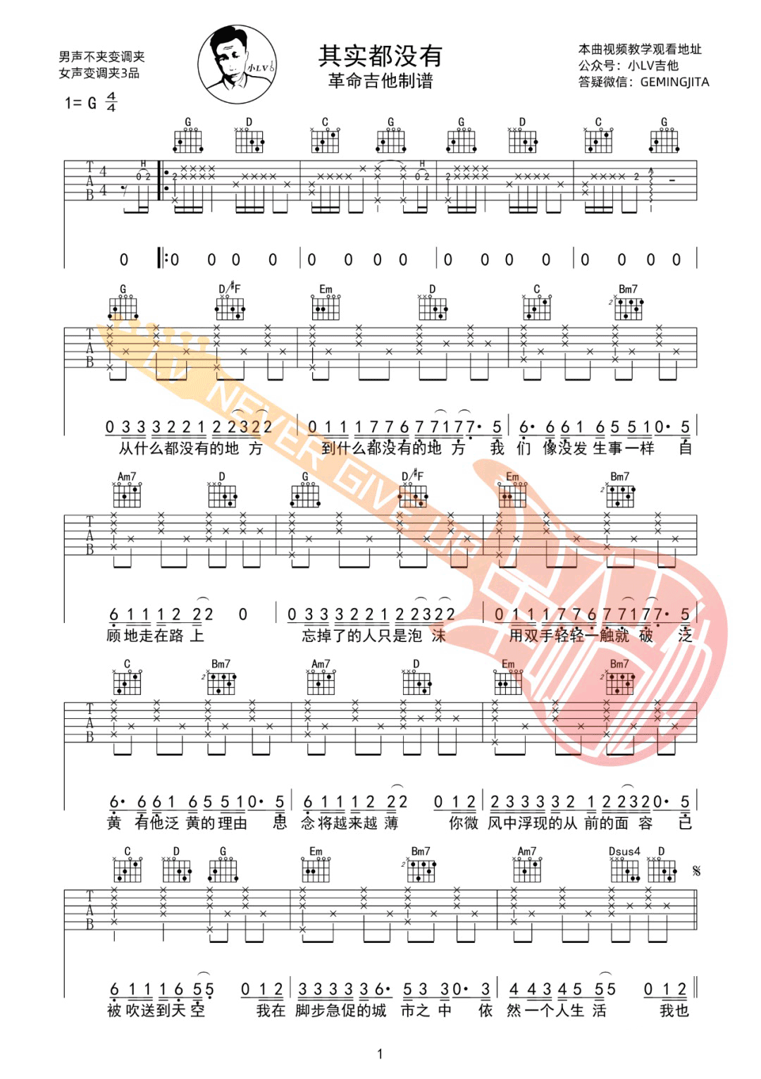 《杨宗纬《其实都没有吉他谱》(G调)》内容来自于互联网,不能保证内容的准确性与完整性,仅供学习交流欣赏,请勿用于其它用途,内容版权归原作者及来源网站所有,如有侵犯到您的权益请来信告知,我们将及时删除。