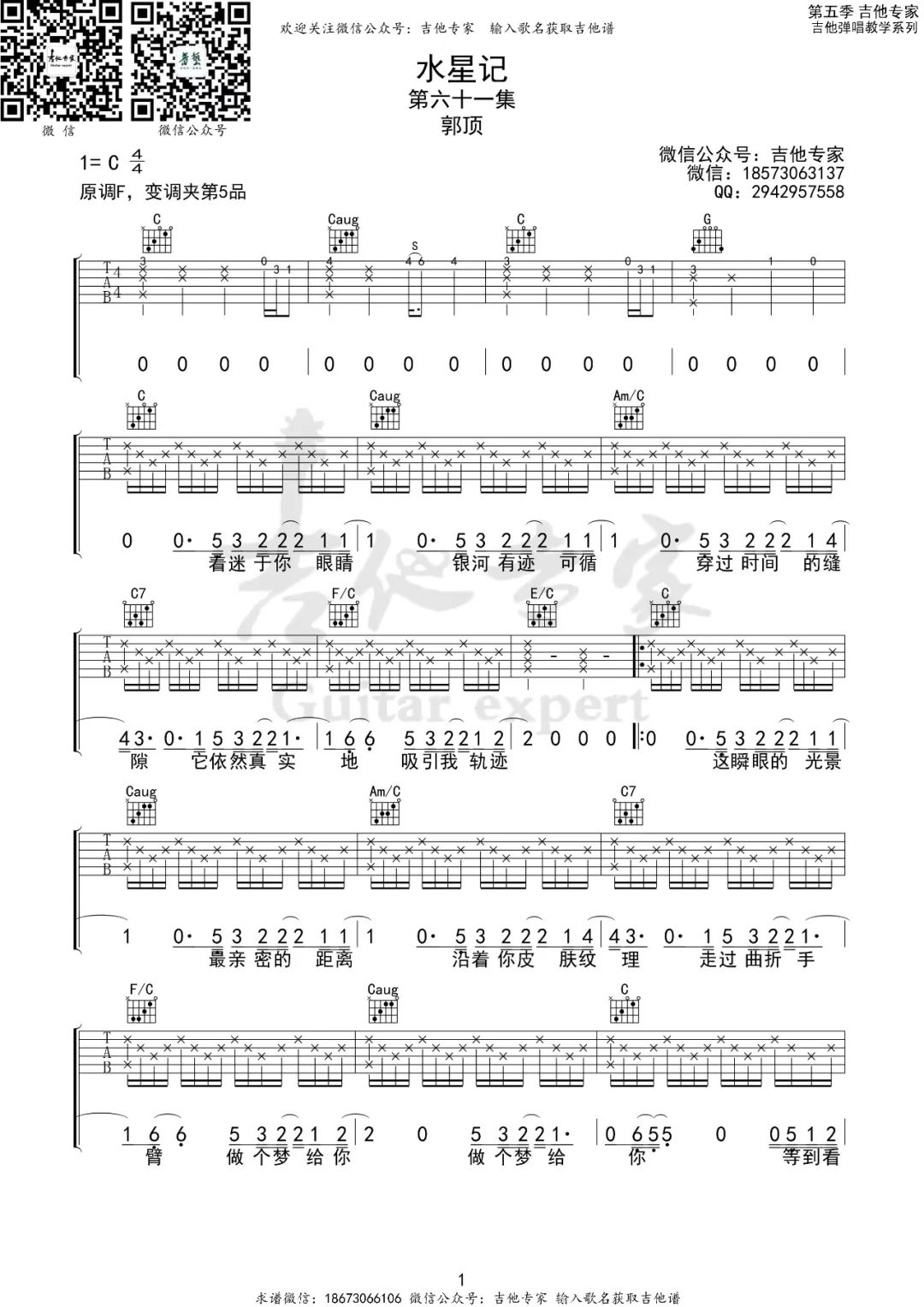 《郭顶《水星记吉他谱》(G调)》内容来自于互联网,不能保证内容的准确性与完整性,仅供学习交流欣赏,请勿用于其它用途,内容版权归原作者及来源网站所有,如有侵犯到您的权益请来信告知,我们将及时删除。