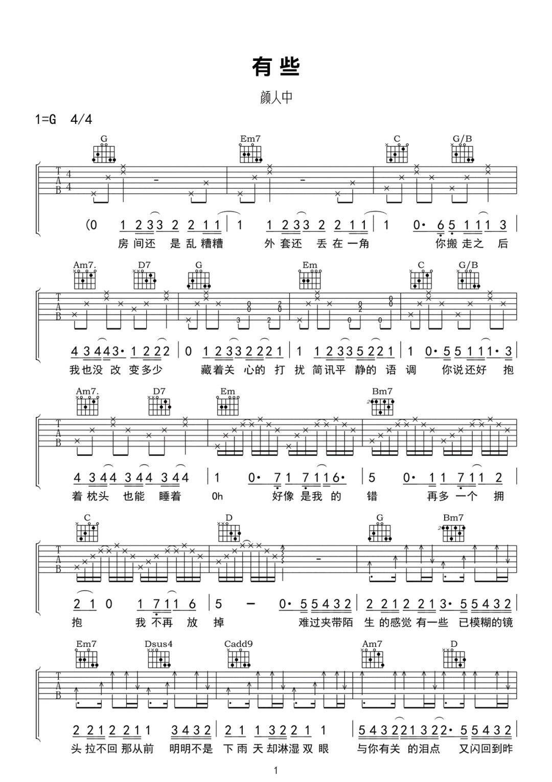《颜人中《有些吉他谱》(C调)》内容来自于互联网,不能保证内容的准确性与完整性,仅供学习交流欣赏,请勿用于其它用途,内容版权归原作者及来源网站所有,如有侵犯到您的权益请来信告知,我们将及时删除。