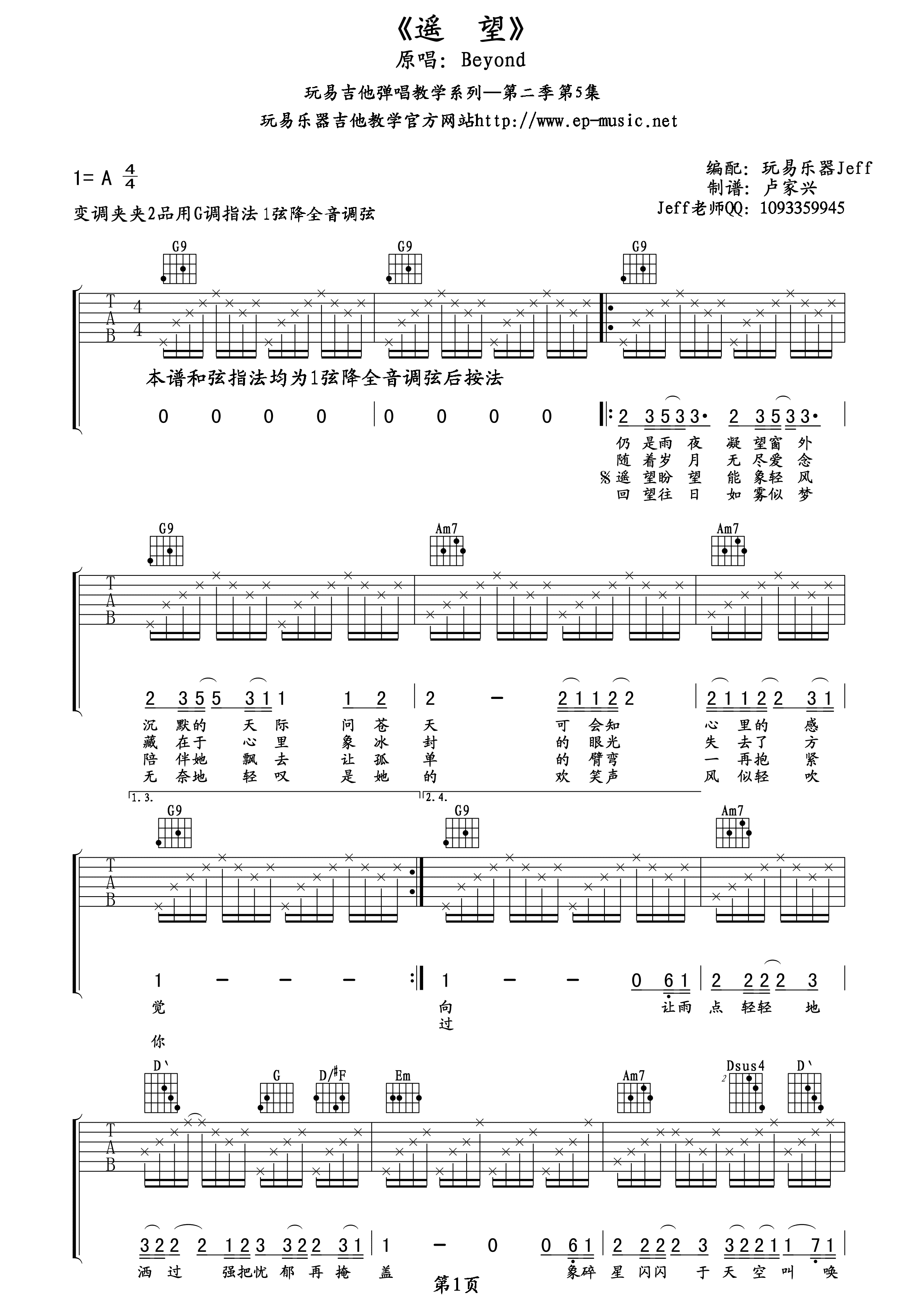 本文标题 《Beyond《遥望吉他谱》(C调)》,网址:https://www.21qupu.com/guitar/63401.html
