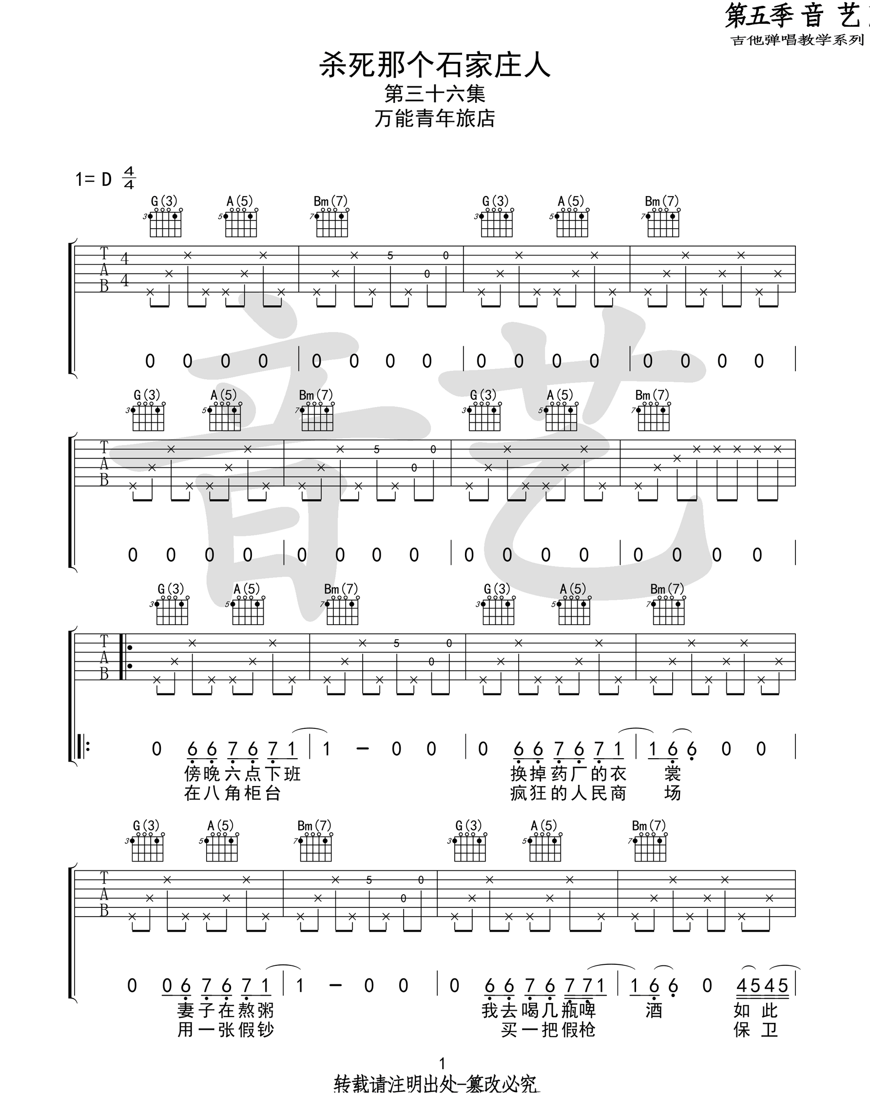 《万能青年旅店《杀死那个石家庄人吉他谱》(C调)》内容来自于互联网,不能保证内容的准确性与完整性,仅供学习交流欣赏,请勿用于其它用途,内容版权归原作者及来源网站所有,如有侵犯到您的权益请来信告知,我们将及时删除。