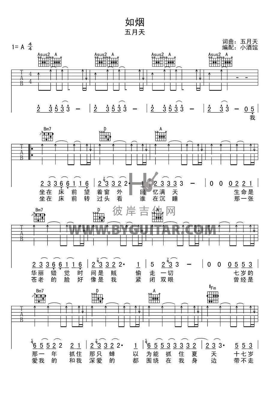 《五月天《如烟吉他谱》(C调)》内容来自于互联网,不能保证内容的准确性与完整性,仅供学习交流欣赏,请勿用于其它用途,内容版权归原作者及来源网站所有,如有侵犯到您的权益请来信告知,我们将及时删除。