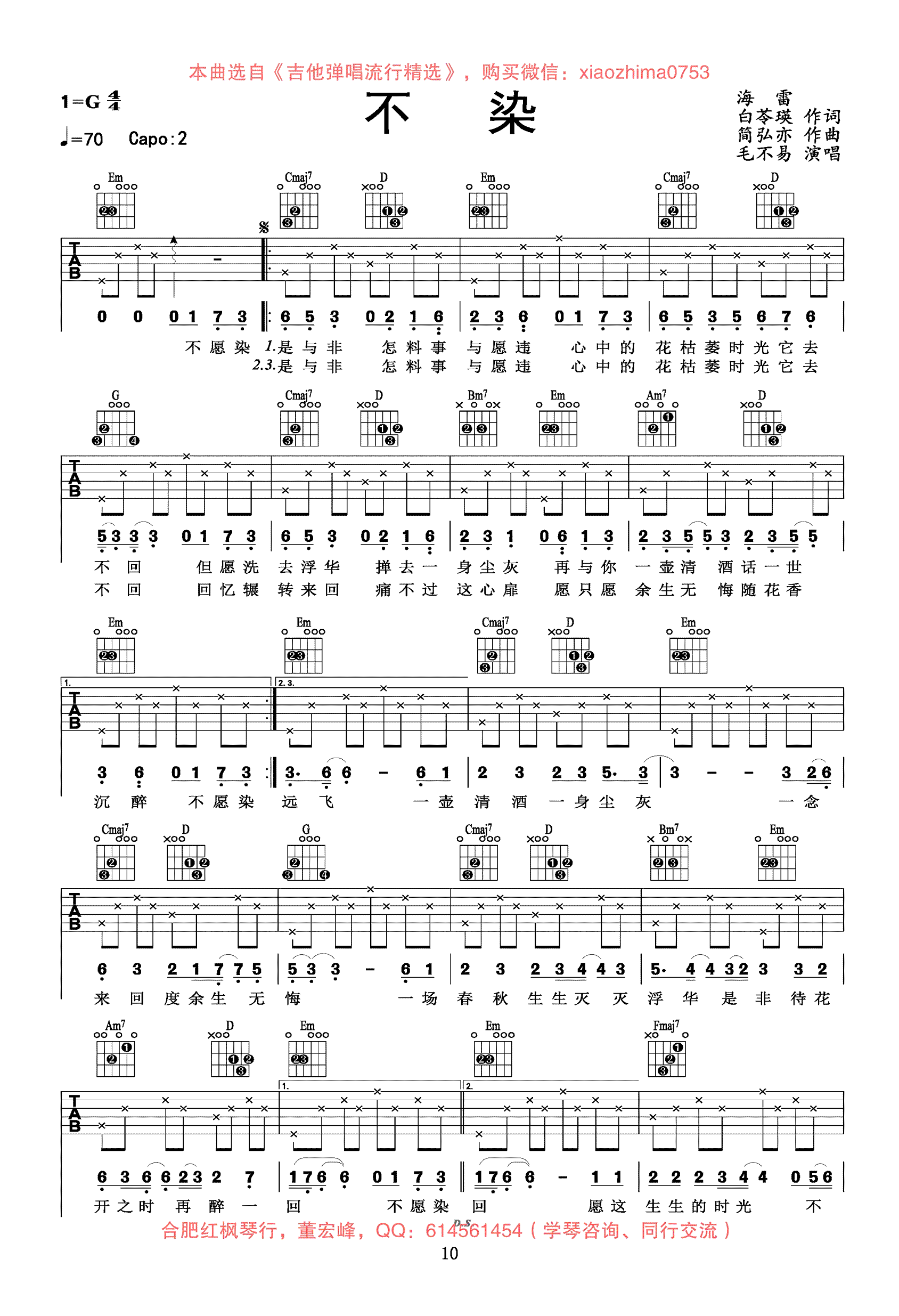 《毛不易《不染吉他谱》(G调)》内容来自于互联网,不能保证内容的准确性与完整性,仅供学习交流欣赏,请勿用于其它用途,内容版权归原作者及来源网站所有,如有侵犯到您的权益请来信告知,我们将及时删除。