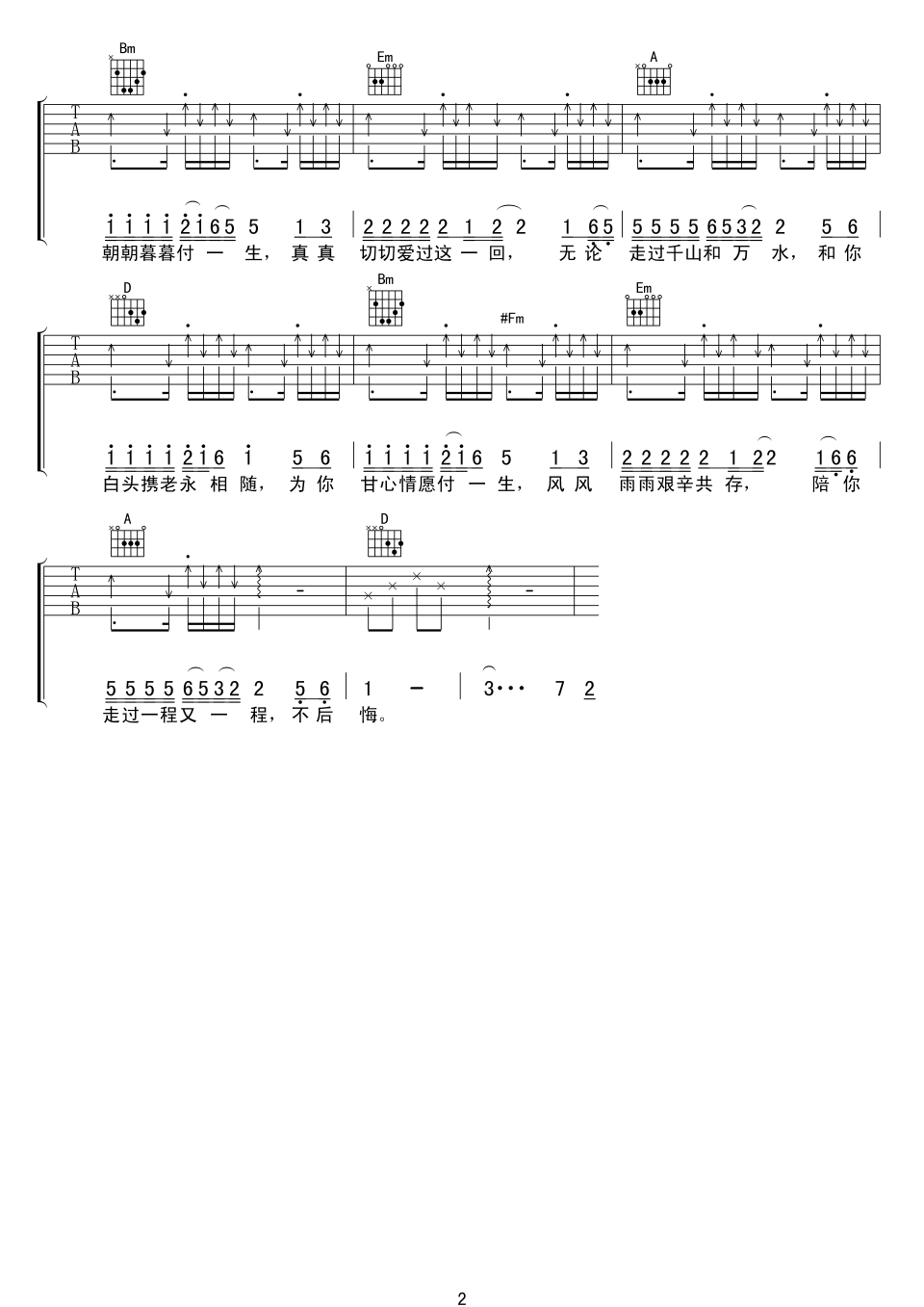 《甘心情愿》是郭峰演唱的经典情歌,C调编曲。歌曲表达了对爱情的无悔付出与执着坚守,情感真挚动人。弹奏时需注重指法流畅,突出旋律的抒情性,可运用分解和弦增强层次感。其特点是旋律优美、节奏舒缓,适合吉他弹唱,通过细腻的音色传递深情氛围。