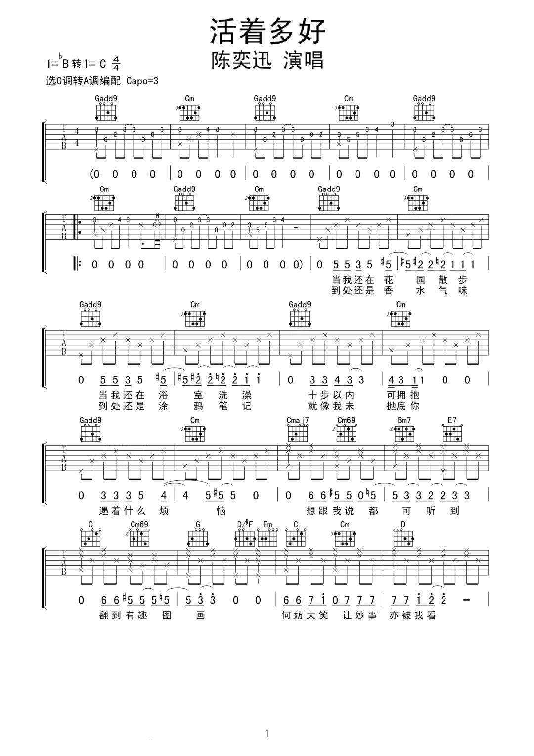《陈奕迅《活着多好吉他谱》(C调)》内容来自于互联网,不能保证内容的准确性与完整性,仅供学习交流欣赏,请勿用于其它用途,内容版权归原作者及来源网站所有,如有侵犯到您的权益请来信告知,我们将及时删除。