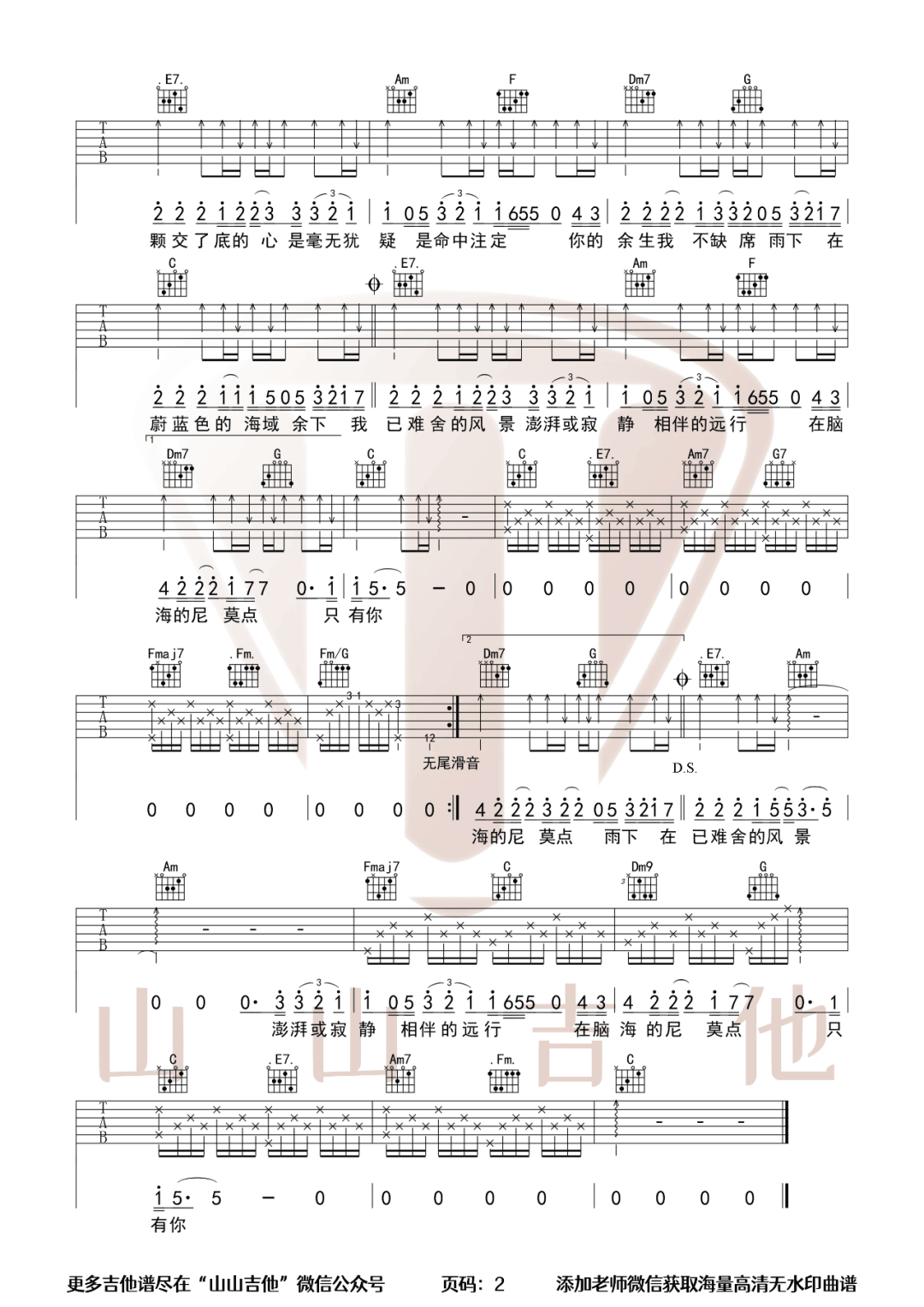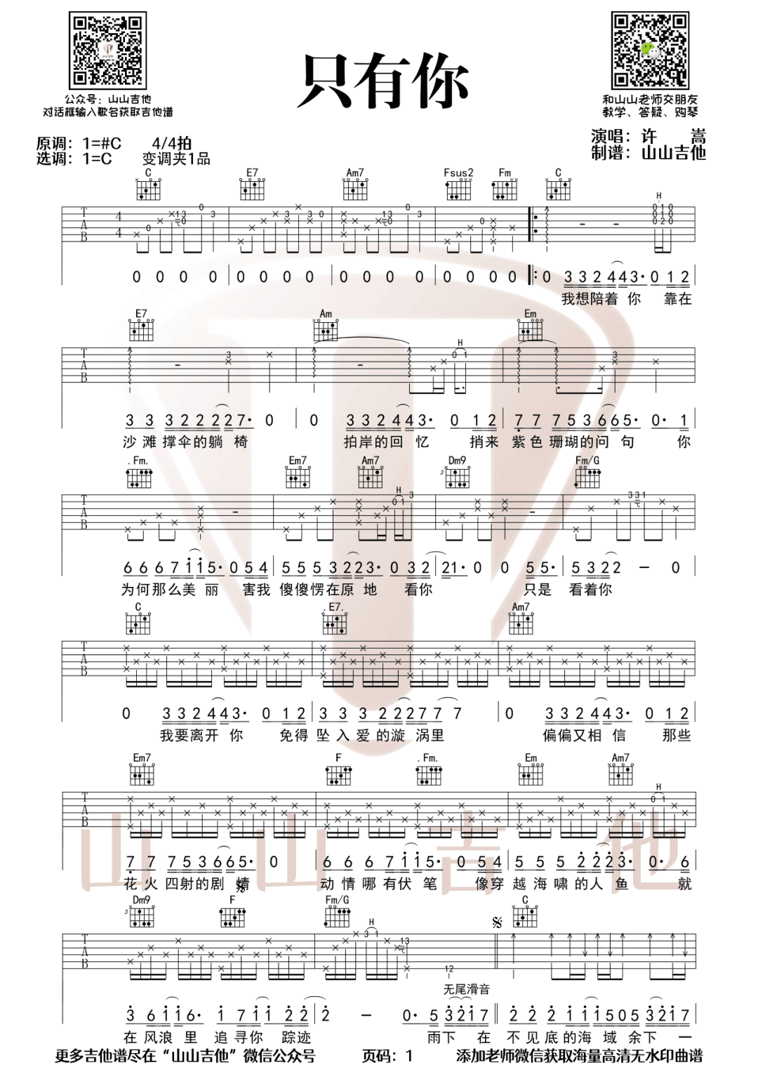 《许嵩《只有你吉他谱》(C调)》内容来自于互联网,不能保证内容的准确性与完整性,仅供学习交流欣赏,请勿用于其它用途,内容版权归原作者及来源网站所有,如有侵犯到您的权益请来信告知,我们将及时删除。