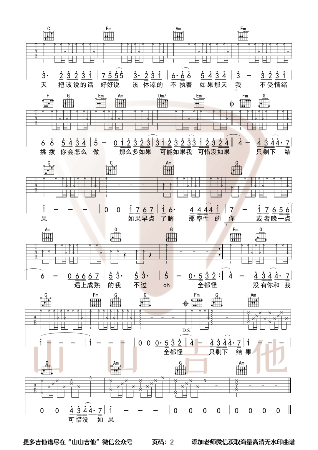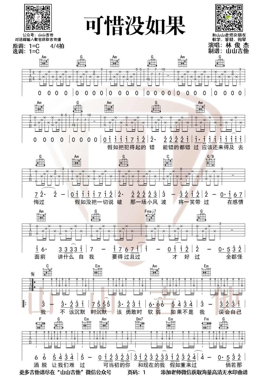 《林俊杰《可惜没如果吉他谱》(C调)》内容来自于互联网,不能保证内容的准确性与完整性,仅供学习交流欣赏,请勿用于其它用途,内容版权归原作者及来源网站所有,如有侵犯到您的权益请来信告知,我们将及时删除。