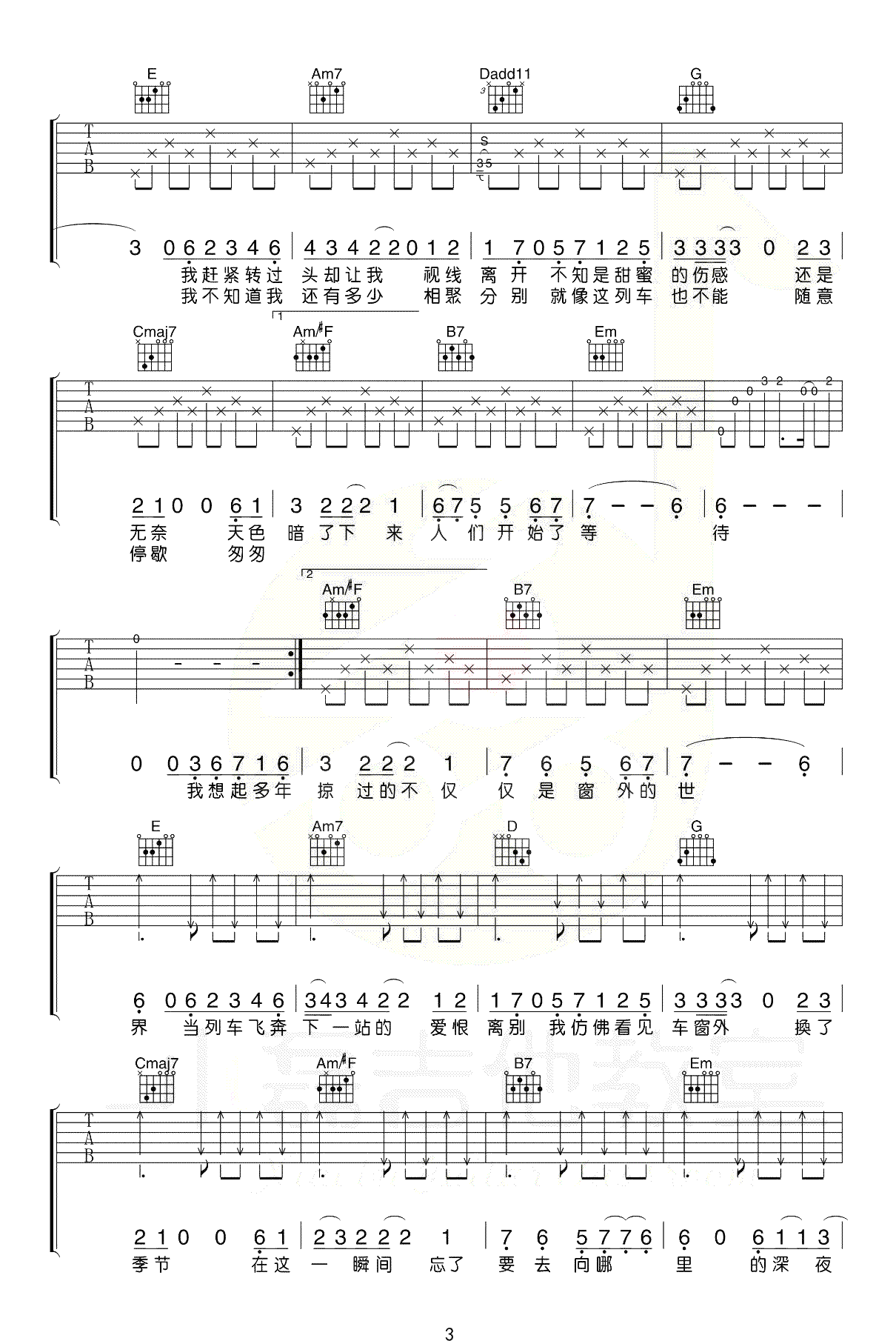 《李健《车站吉他谱》(G调)》内容来自于互联网,不能保证内容的准确性与完整性,仅供学习交流欣赏,请勿用于其它用途,内容版权归原作者及来源网站所有,如有侵犯到您的权益请来信告知,我们将及时删除。