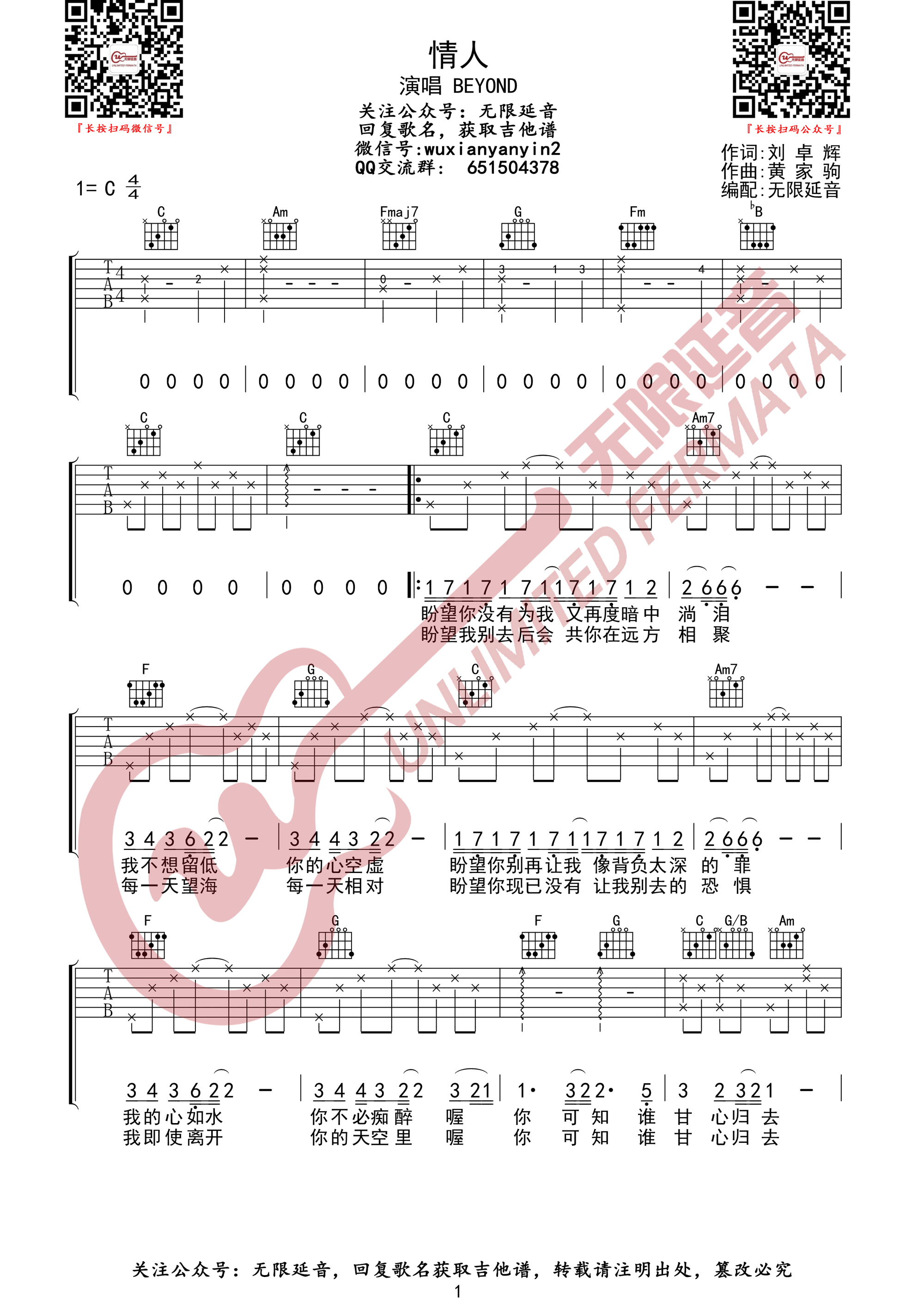 《Beyond《情人吉他谱》(G调)》内容来自于互联网,不能保证内容的准确性与完整性,仅供学习交流欣赏,请勿用于其它用途,内容版权归原作者及来源网站所有,如有侵犯到您的权益请来信告知,我们将及时删除。
