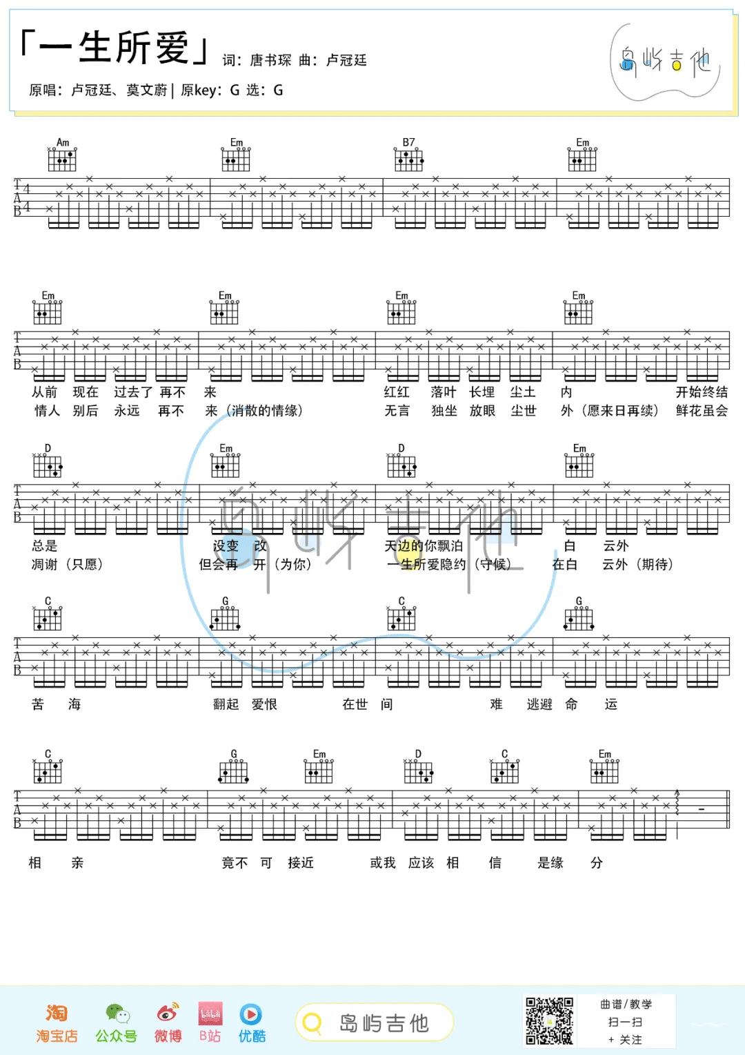 《卢冠廷《一生所爱吉他谱》(C调)》内容来自于互联网,不能保证内容的准确性与完整性,仅供学习交流欣赏,请勿用于其它用途,内容版权归原作者及来源网站所有,如有侵犯到您的权益请来信告知,我们将及时删除。