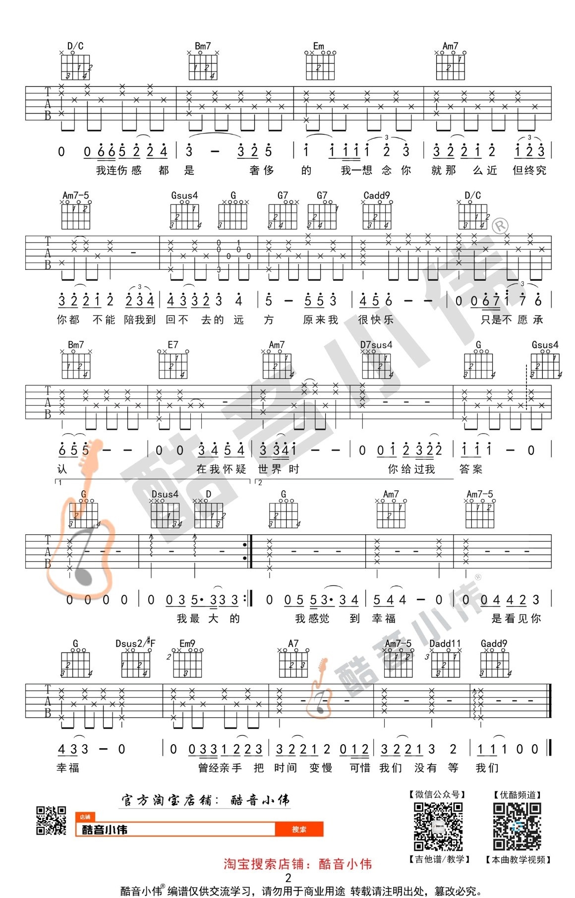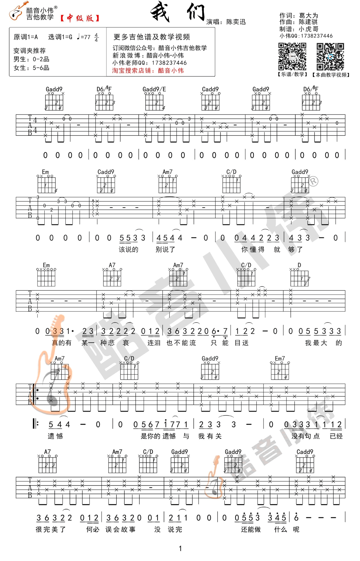 我们陈奕迅演唱C调,陈奕迅为电影献唱的最后一首歌,歌曲,变调夹夹第二品。我们,唱陈奕迅,三张高清图片谱,吉他专家制谱出品,