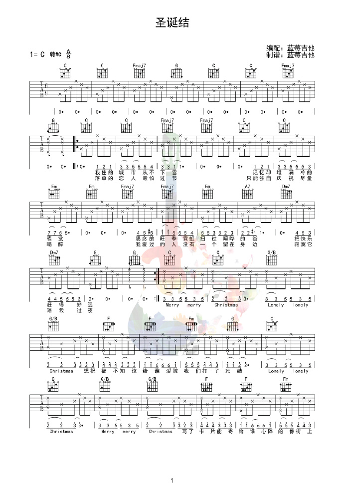 圣诞结陈奕迅演唱C调,此版本的曲谱为和弦图谱,前面分享过一个,此版本为的,在弹奏的时候变调夹夹在2品处。每年圣诞节都会有人送祝歌。
