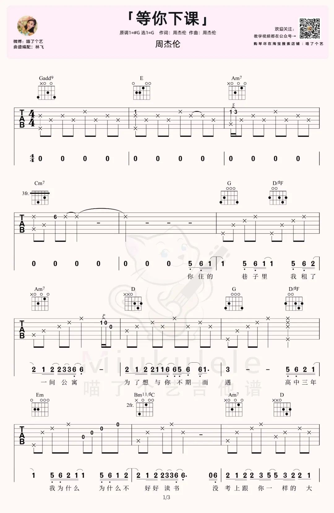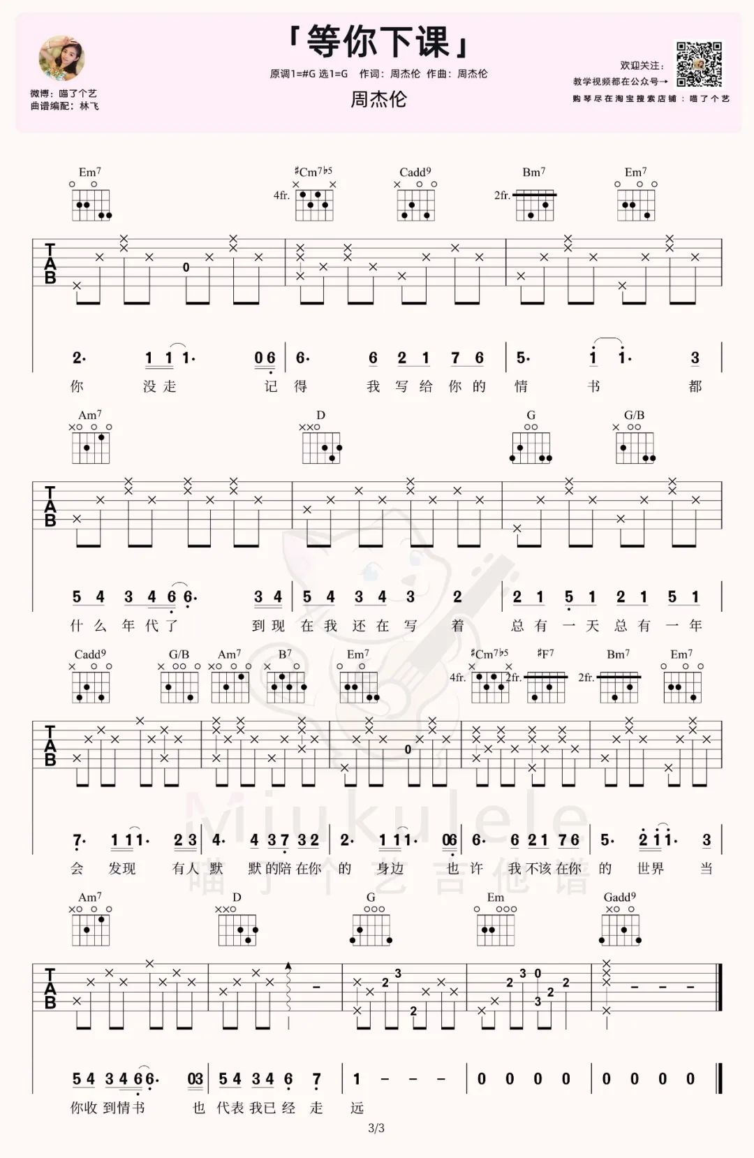 《周杰伦《等你下课吉他谱》(C调)》内容来自于互联网,不能保证内容的准确性与完整性,仅供学习交流欣赏,请勿用于其它用途,内容版权归原作者及来源网站所有,如有侵犯到您的权益请来信告知,我们将及时删除。