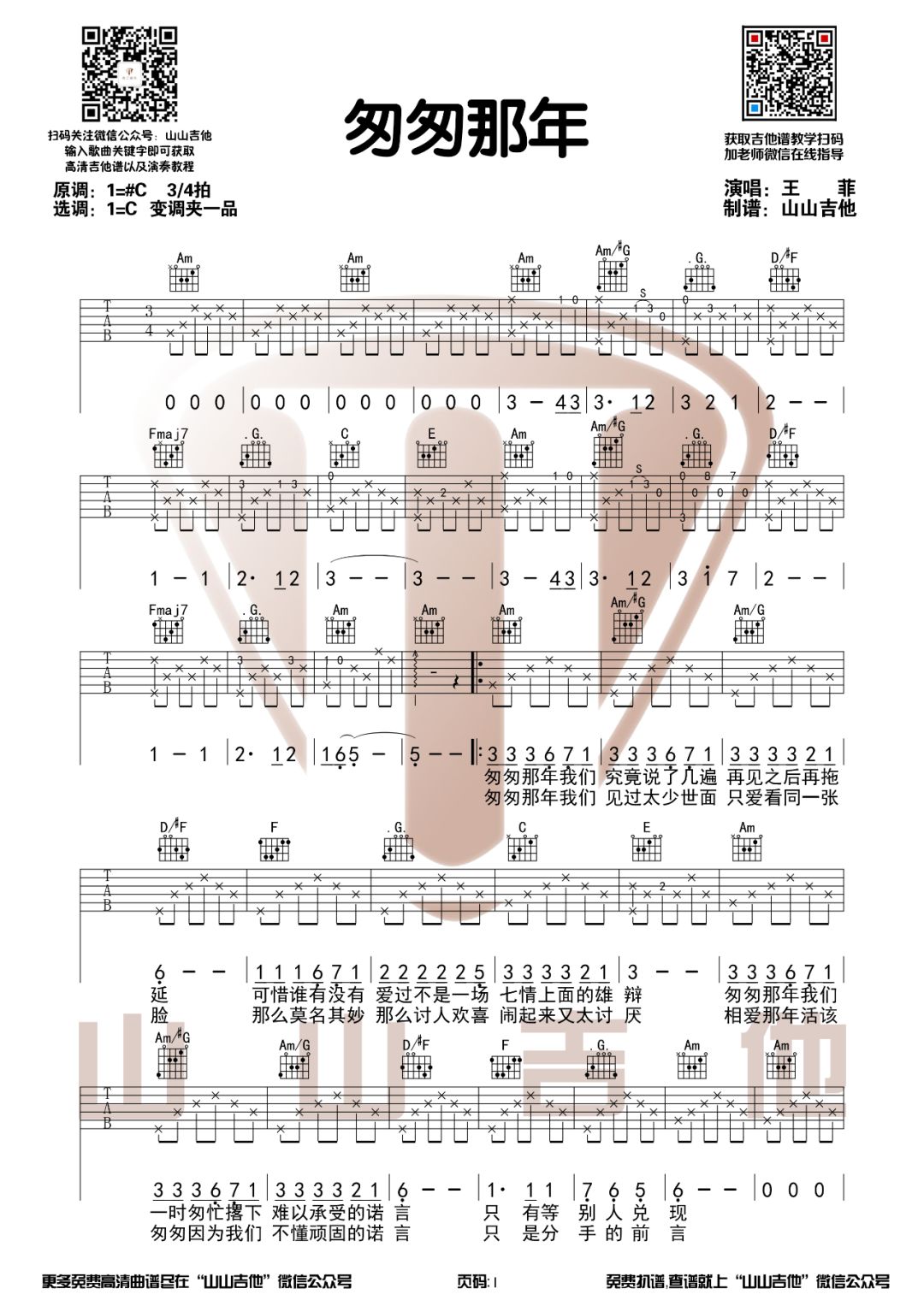 《王菲《匆匆那年吉他谱》(G调)》内容来自于互联网,不能保证内容的准确性与完整性,仅供学习交流欣赏,请勿用于其它用途,内容版权归原作者及来源网站所有,如有侵犯到您的权益请来信告知,我们将及时删除。