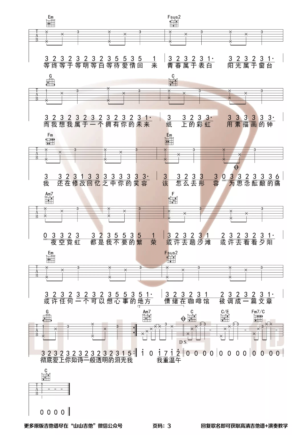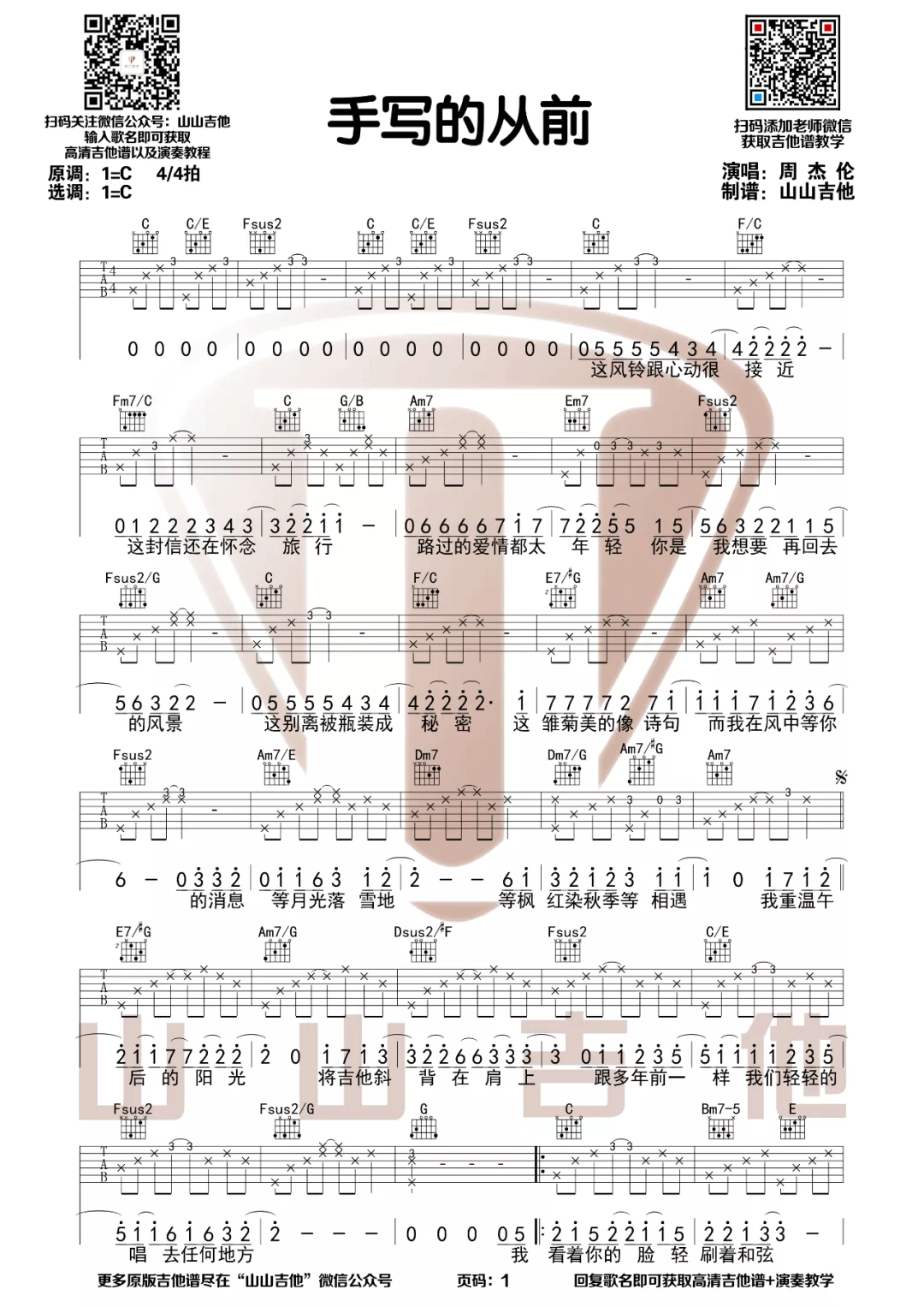 《周杰伦《手写的从前吉他谱》(C调)》内容来自于互联网,不能保证内容的准确性与完整性,仅供学习交流欣赏,请勿用于其它用途,内容版权归原作者及来源网站所有,如有侵犯到您的权益请来信告知,我们将及时删除。