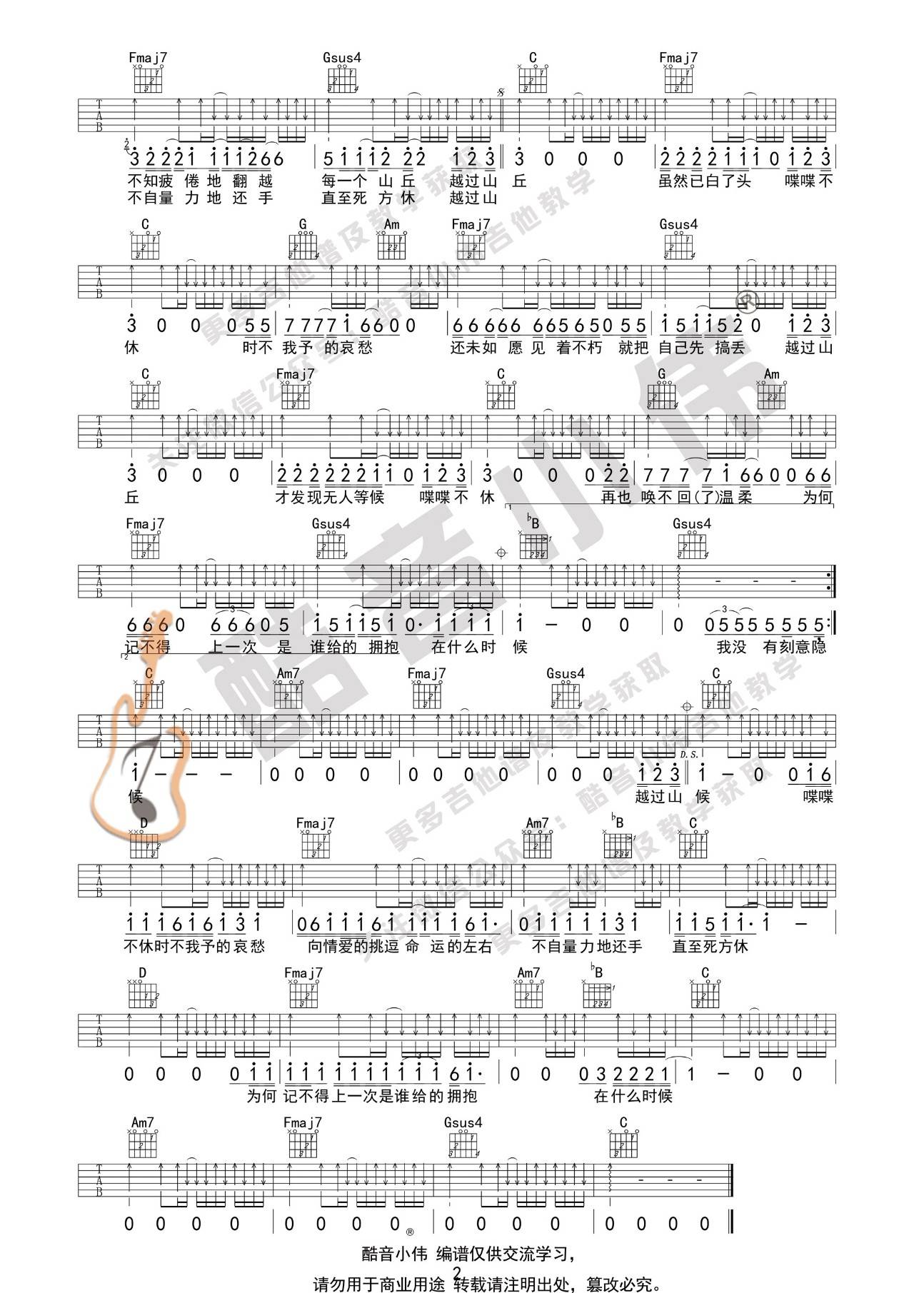 《李宗盛《山丘吉他谱》(C调)》内容来自于互联网,不能保证内容的准确性与完整性,仅供学习交流欣赏,请勿用于其它用途,内容版权归原作者及来源网站所有,如有侵犯到您的权益请来信告知,我们将及时删除。