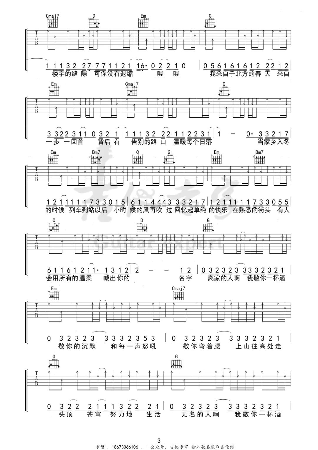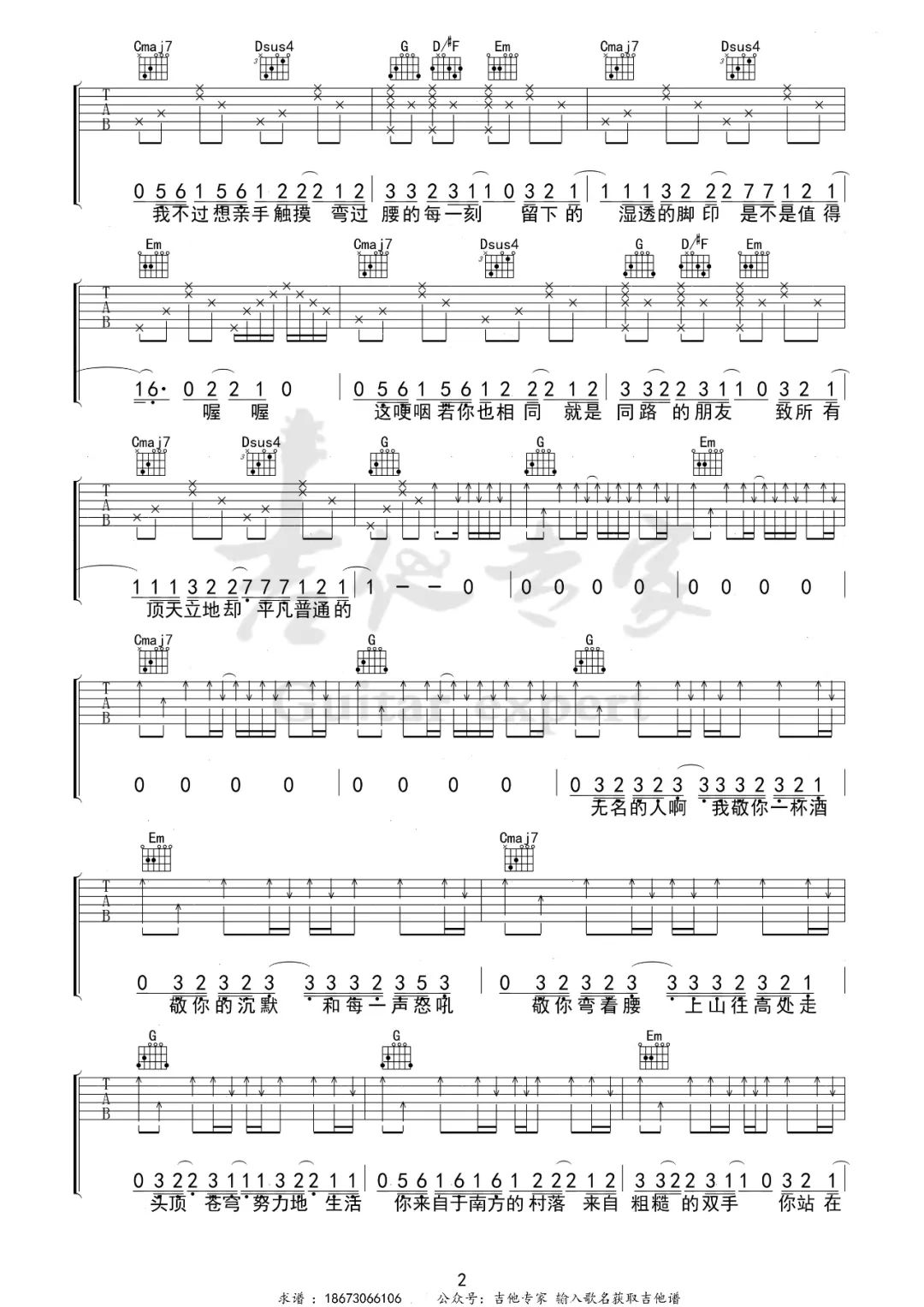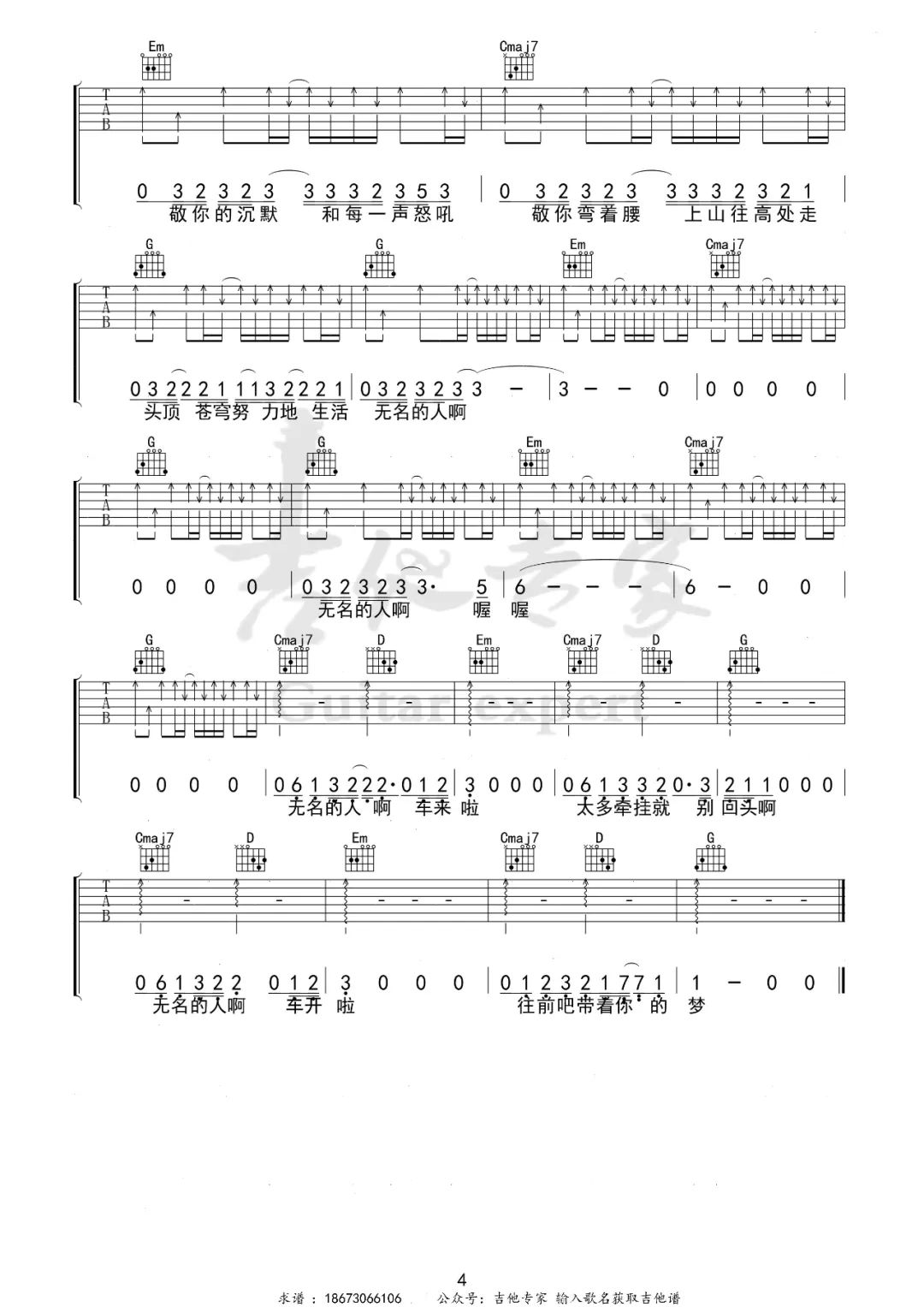 《毛不易《无名的人吉他谱》(G调)》内容来自于互联网,不能保证内容的准确性与完整性,仅供学习交流欣赏,请勿用于其它用途,内容版权归原作者及来源网站所有,如有侵犯到您的权益请来信告知,我们将及时删除。