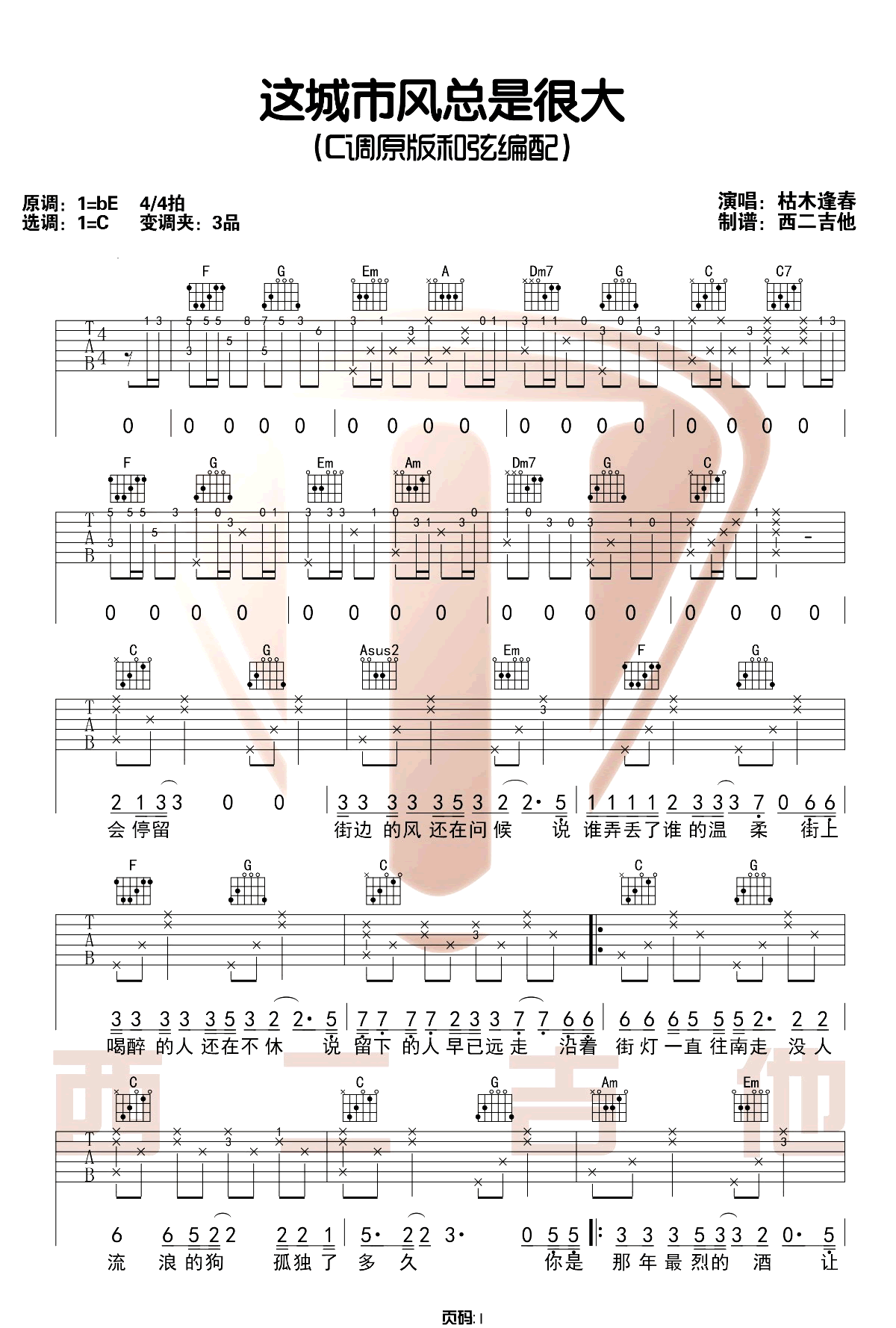 《枯木逢春《这城市风总是很大吉他谱》(G调)》内容来自于互联网,不能保证内容的准确性与完整性,仅供学习交流欣赏,请勿用于其它用途,内容版权归原作者及来源网站所有,如有侵犯到您的权益请来信告知,我们将及时删除。