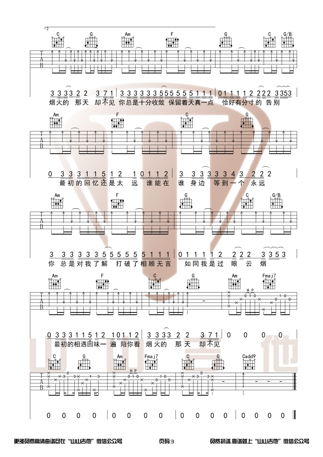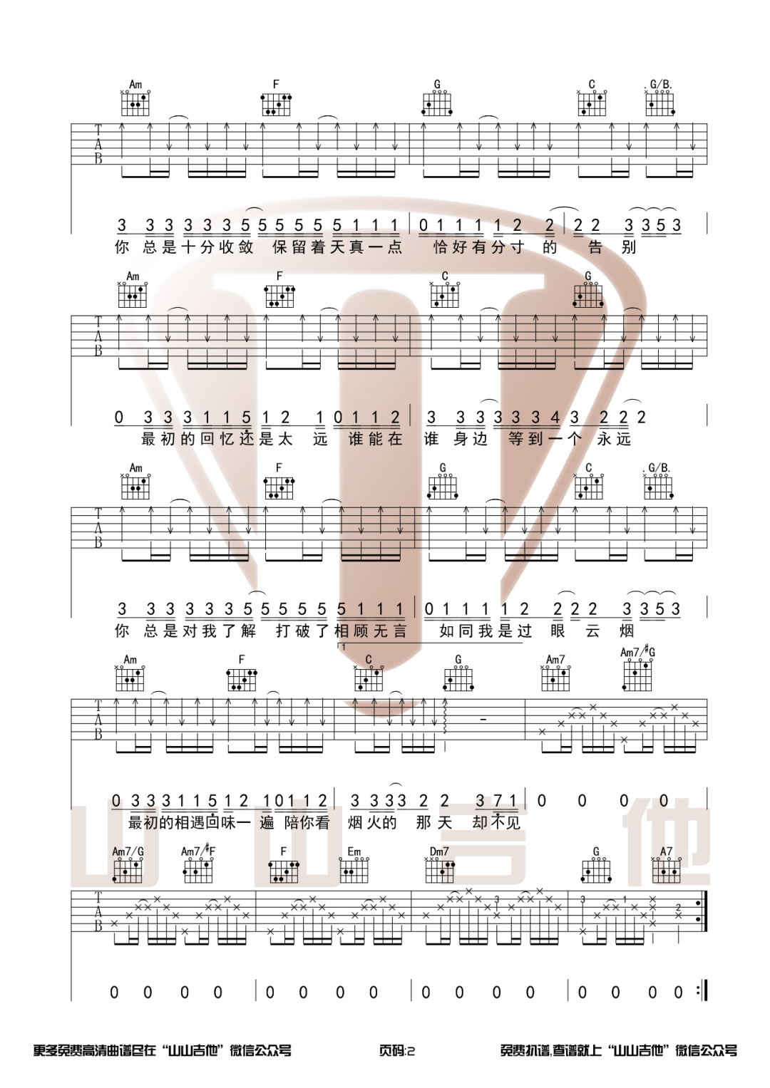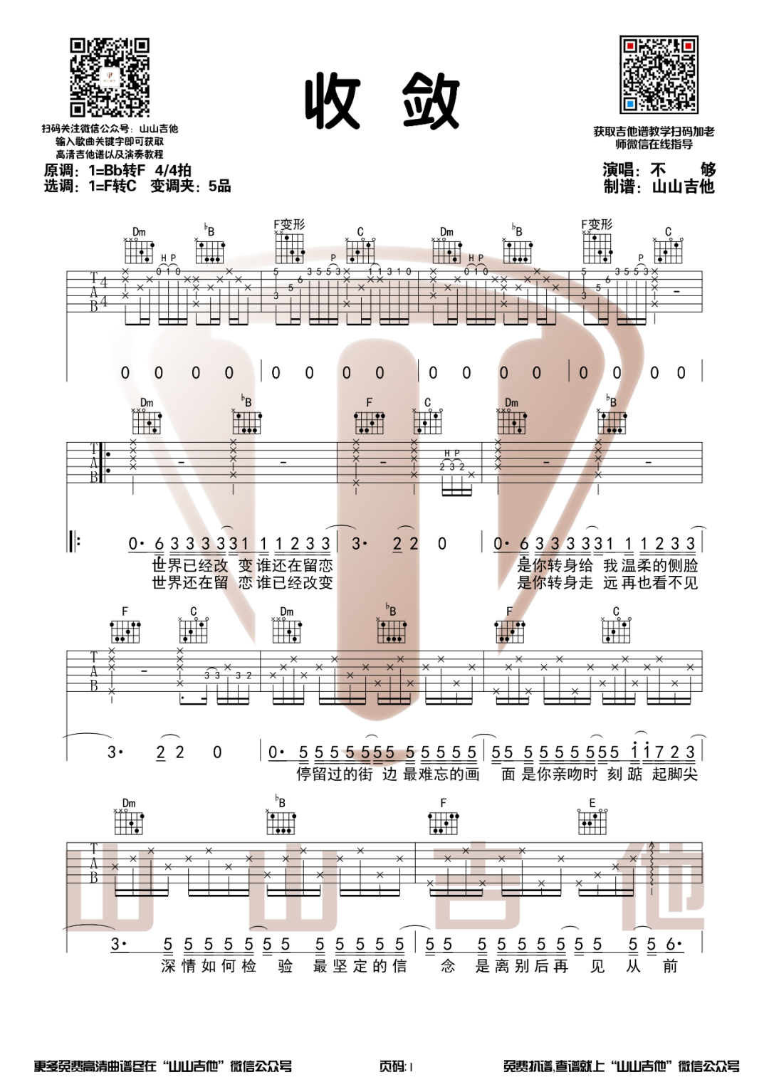 不够《收敛吉他谱》(G调)