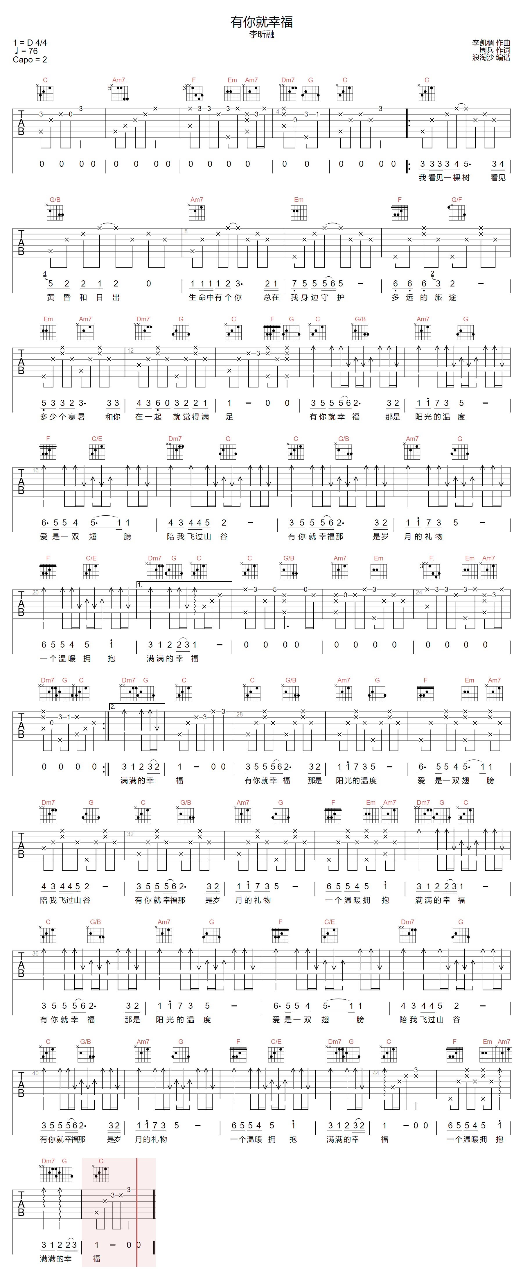 《李昕融《有你就幸福吉他谱》(G调)》内容来自于互联网,不能保证内容的准确性与完整性,仅供学习交流欣赏,请勿用于其它用途,内容版权归原作者及来源网站所有,如有侵犯到您的权益请来信告知,我们将及时删除。
