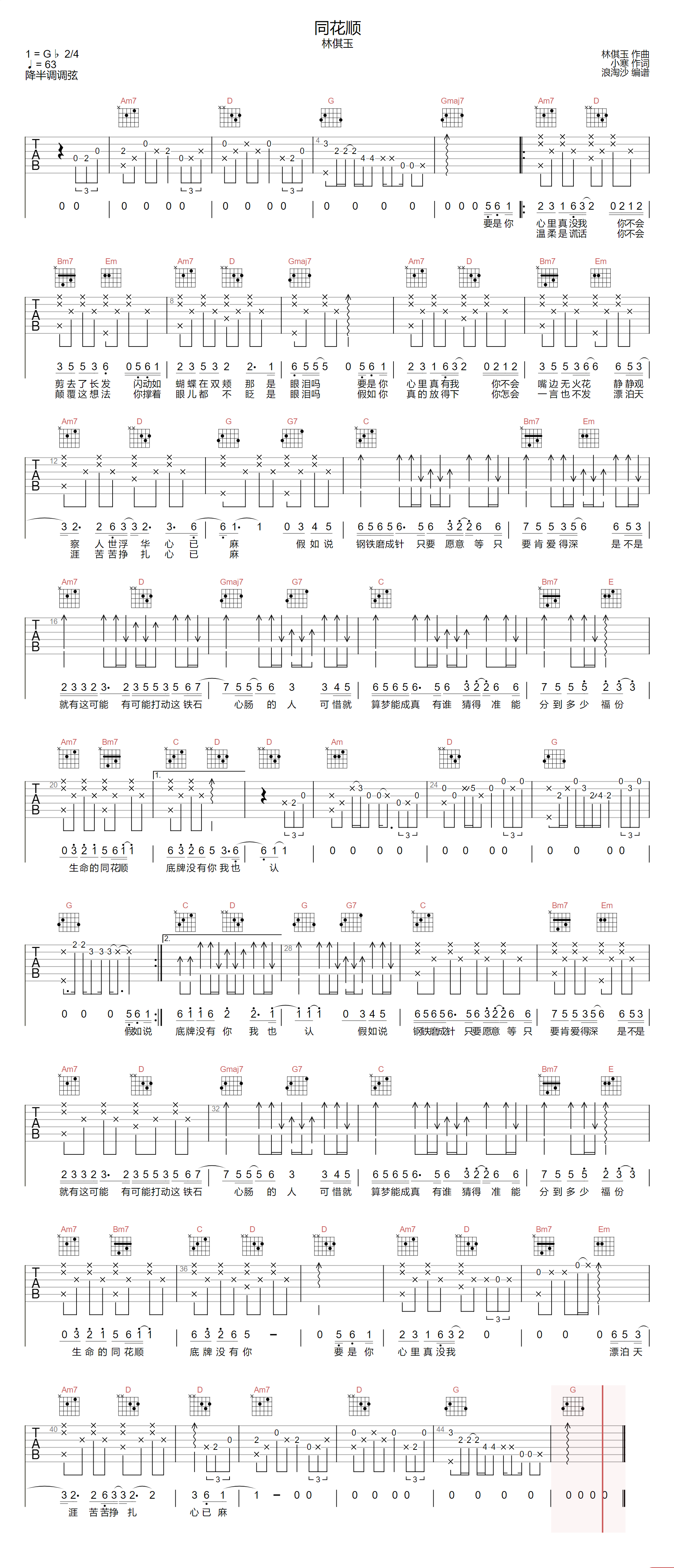 《林倛玉《同花顺吉他谱》(G调)》内容来自于互联网,不能保证内容的准确性与完整性,仅供学习交流欣赏,请勿用于其它用途,内容版权归原作者及来源网站所有,如有侵犯到您的权益请来信告知,我们将及时删除。