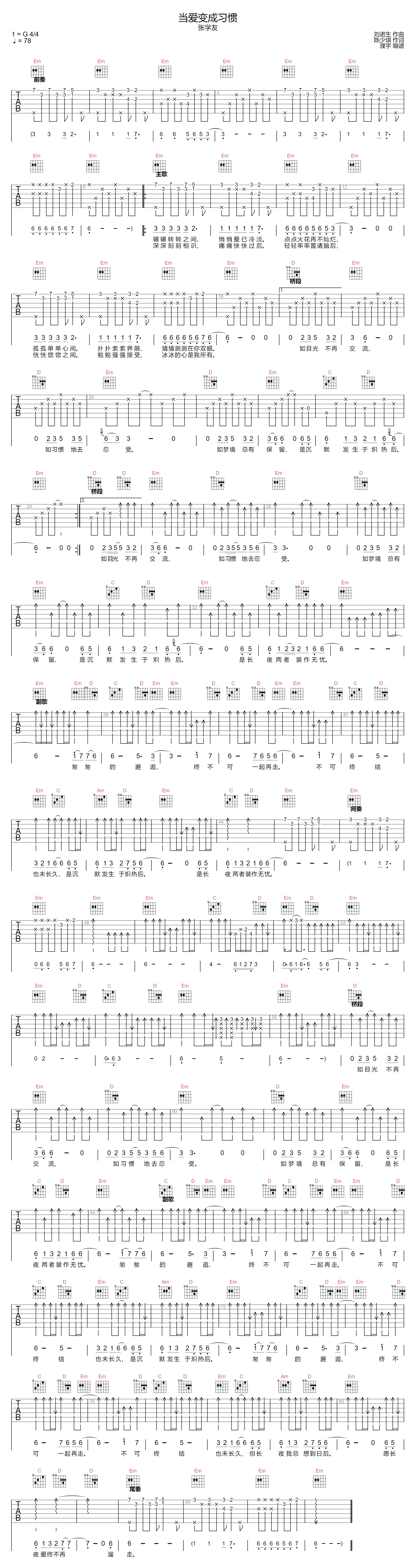 《张学友《当爱变成习惯吉他谱》(C调)》内容来自于互联网,不能保证内容的准确性与完整性,仅供学习交流欣赏,请勿用于其它用途,内容版权归原作者及来源网站所有,如有侵犯到您的权益请来信告知,我们将及时删除。
