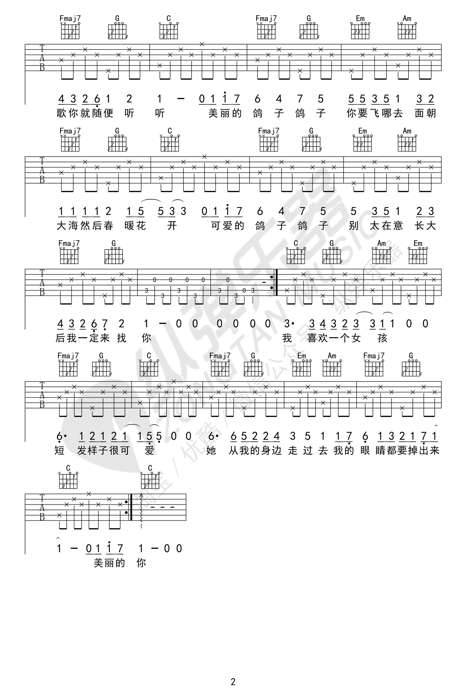 《徐秉龙《鸽子吉他谱》(G调)》内容来自于互联网,不能保证内容的准确性与完整性,仅供学习交流欣赏,请勿用于其它用途,内容版权归原作者及来源网站所有,如有侵犯到您的权益请来信告知,我们将及时删除。
