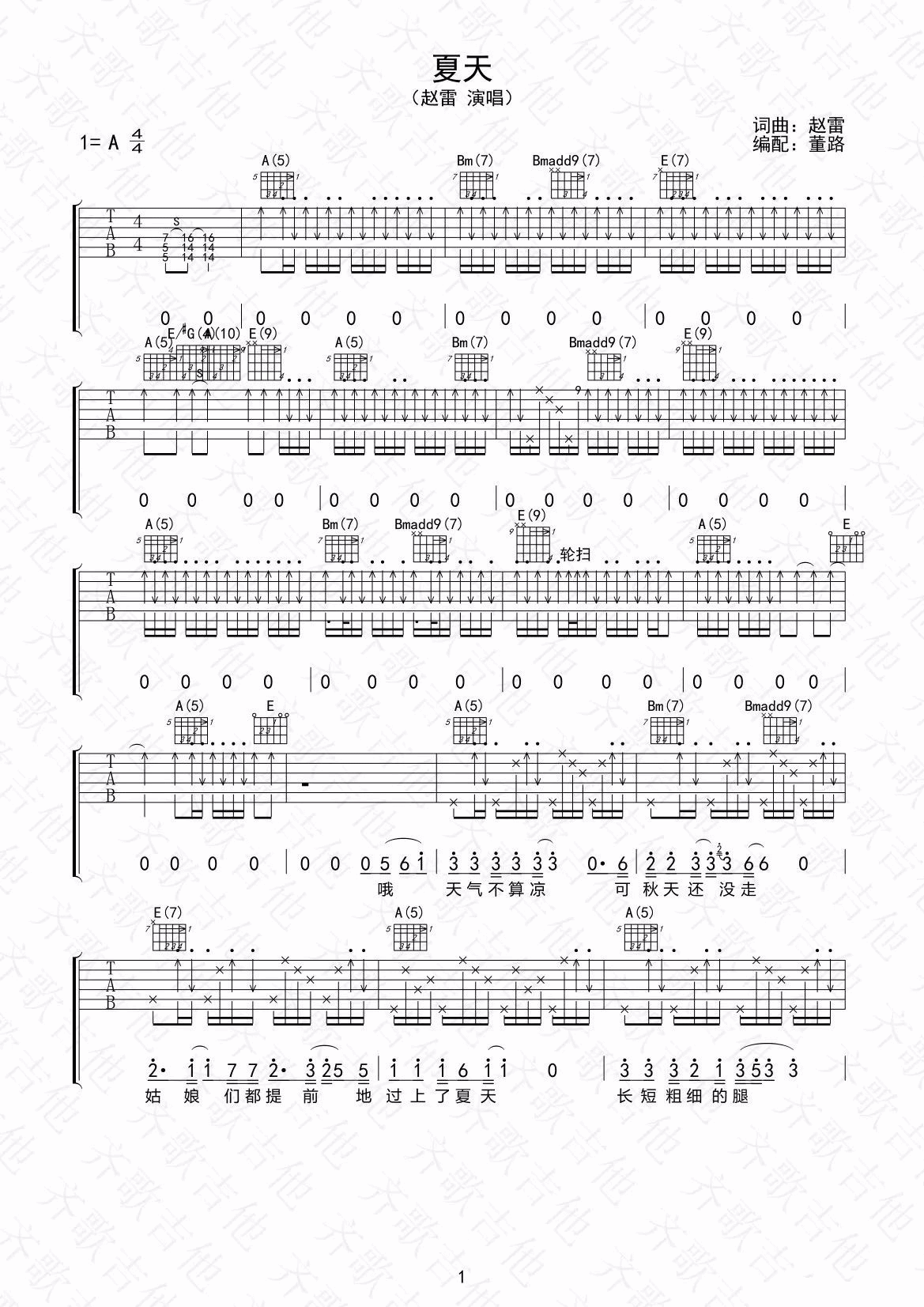 《赵雷《夏天吉他谱》(G调)》内容来自于互联网,不能保证内容的准确性与完整性,仅供学习交流欣赏,请勿用于其它用途,内容版权归原作者及来源网站所有,如有侵犯到您的权益请来信告知,我们将及时删除。