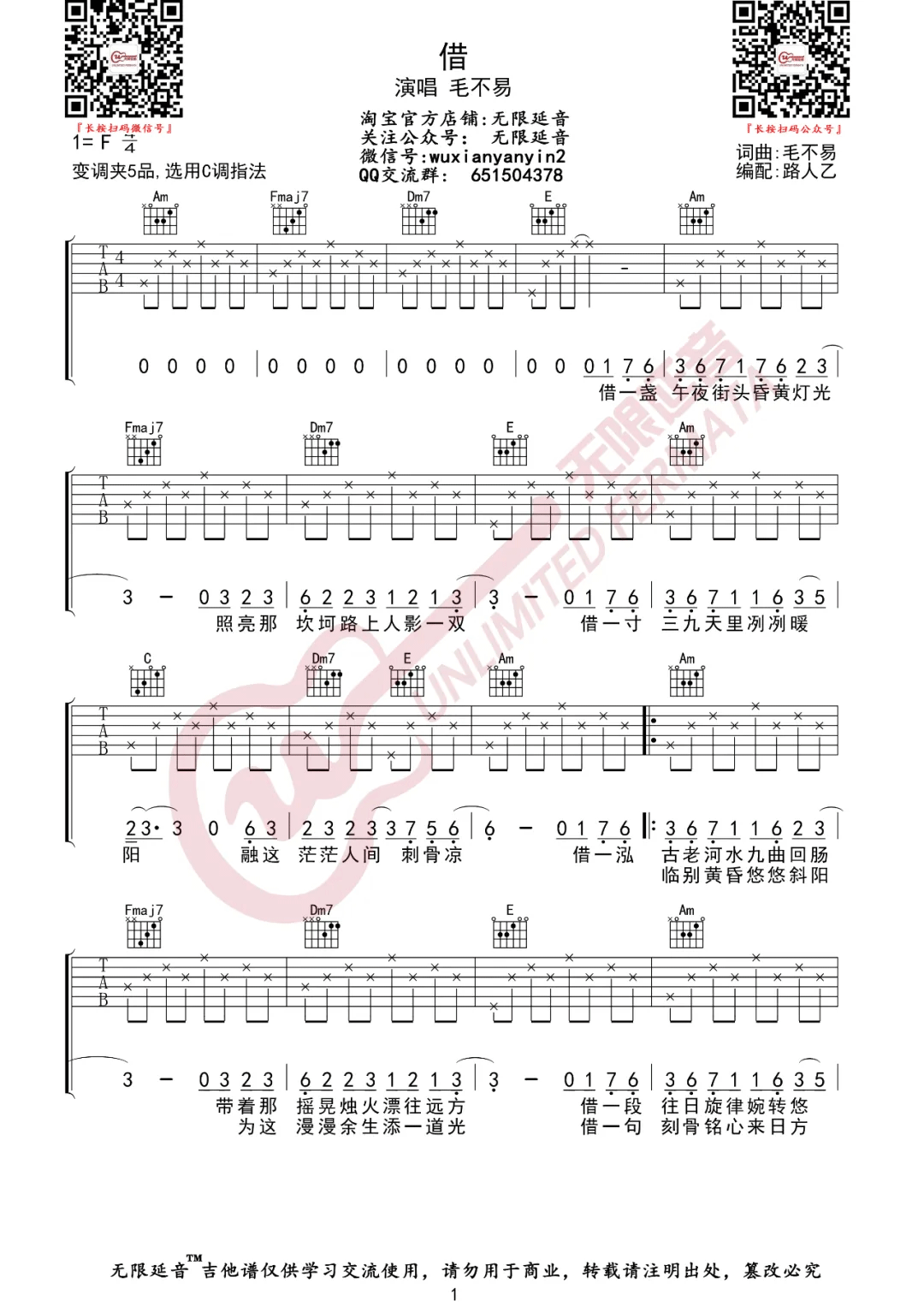 《毛不易《借吉他谱》(G调)》内容来自于互联网,不能保证内容的准确性与完整性,仅供学习交流欣赏,请勿用于其它用途,内容版权归原作者及来源网站所有,如有侵犯到您的权益请来信告知,我们将及时删除。