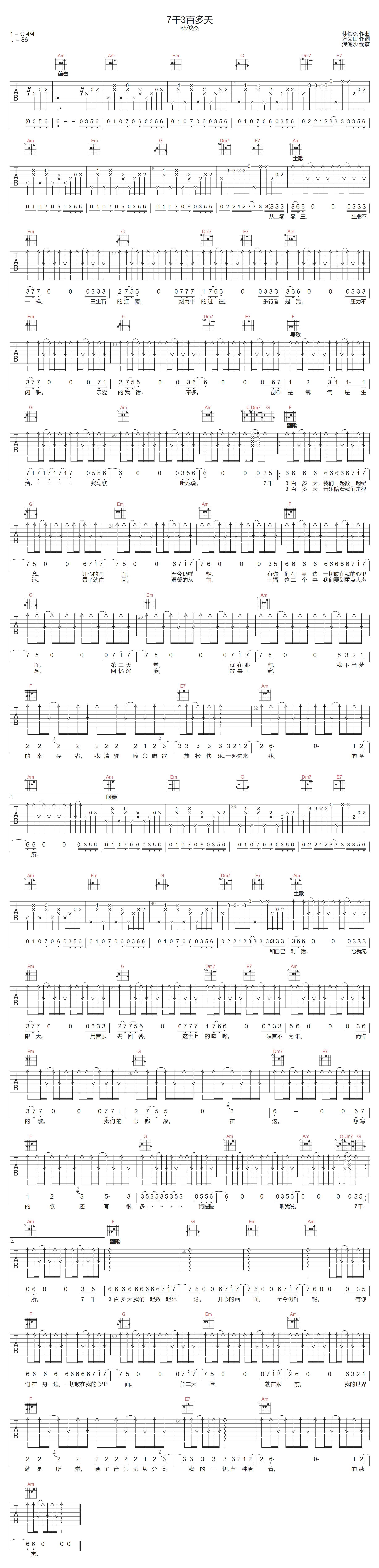 《林俊杰《7千3百多天吉他谱》(C调)》内容来自于互联网,不能保证内容的准确性与完整性,仅供学习交流欣赏,请勿用于其它用途,内容版权归原作者及来源网站所有,如有侵犯到您的权益请来信告知,我们将及时删除。