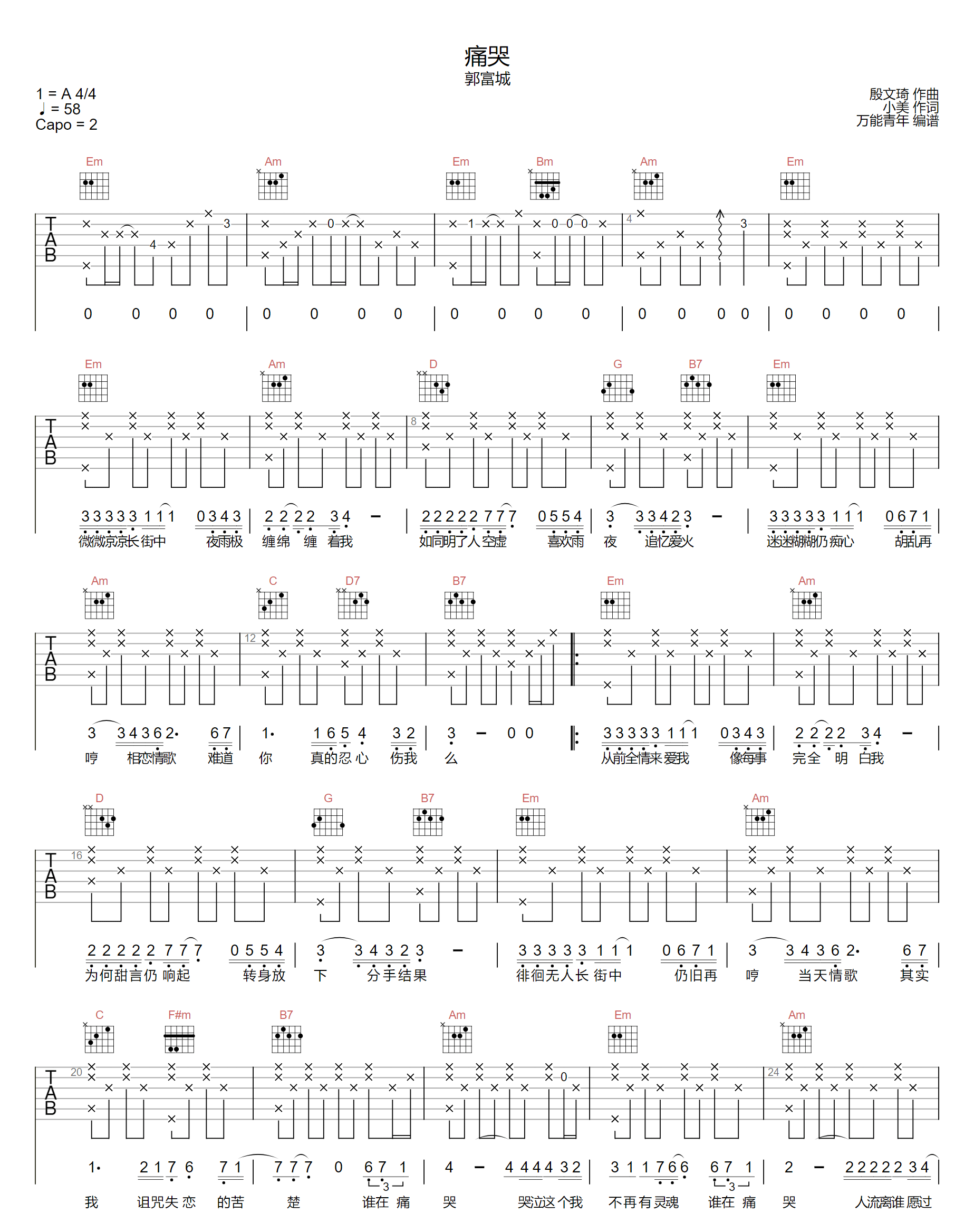 郭富城《痛哭吉他谱》(G调)