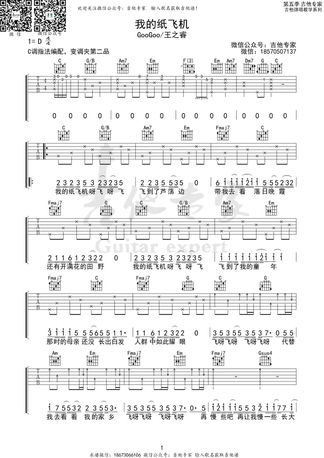 本文标题 《GooGoo/王之睿《我的纸飞机吉他谱》(C调)》,网址:https://www.21qupu.com/guitar/63610.html