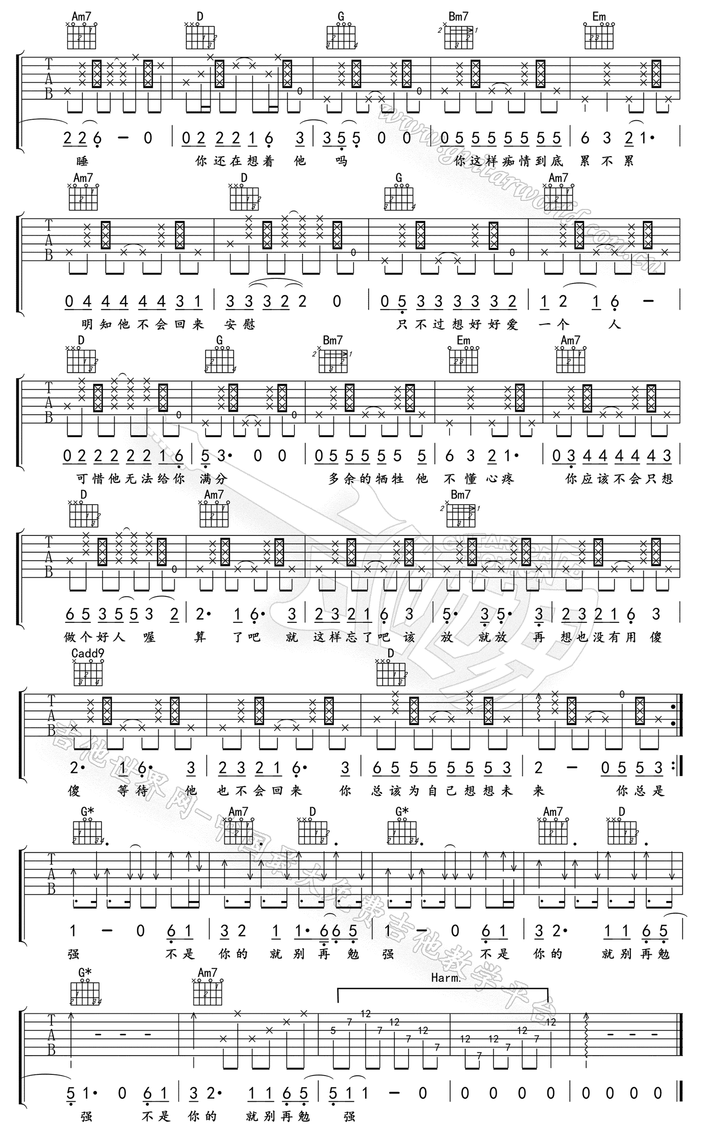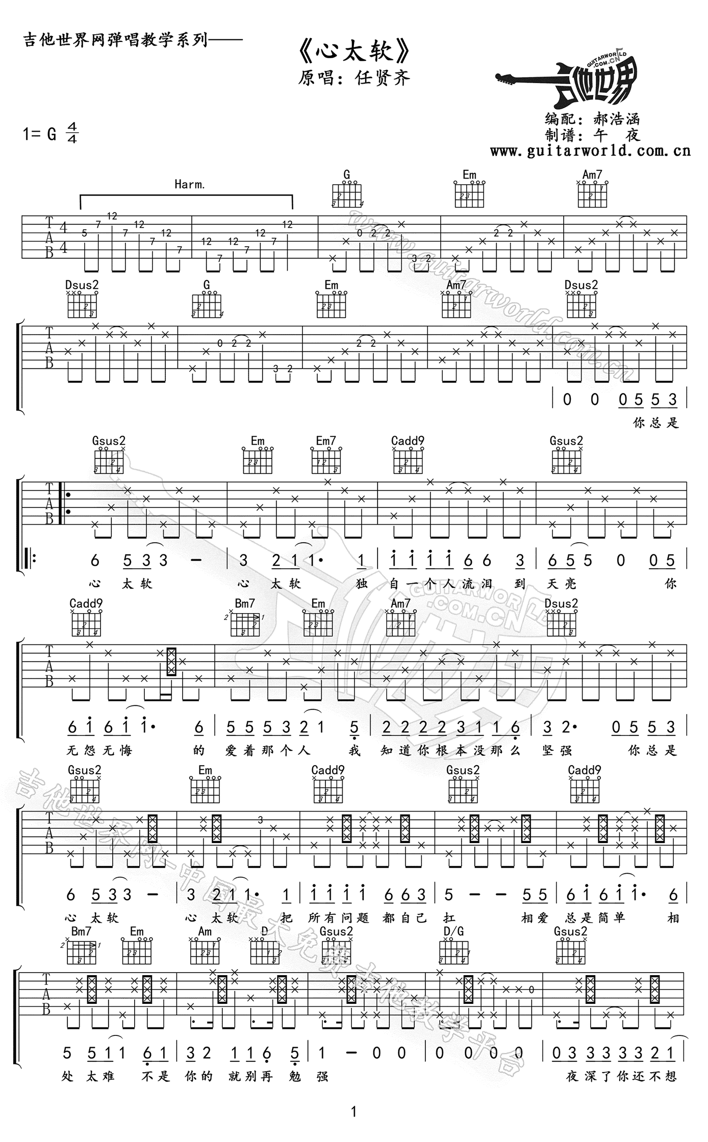 《任贤齐《心太软吉他谱》(C调)》内容来自于互联网,不能保证内容的准确性与完整性,仅供学习交流欣赏,请勿用于其它用途,内容版权归原作者及来源网站所有,如有侵犯到您的权益请来信告知,我们将及时删除。