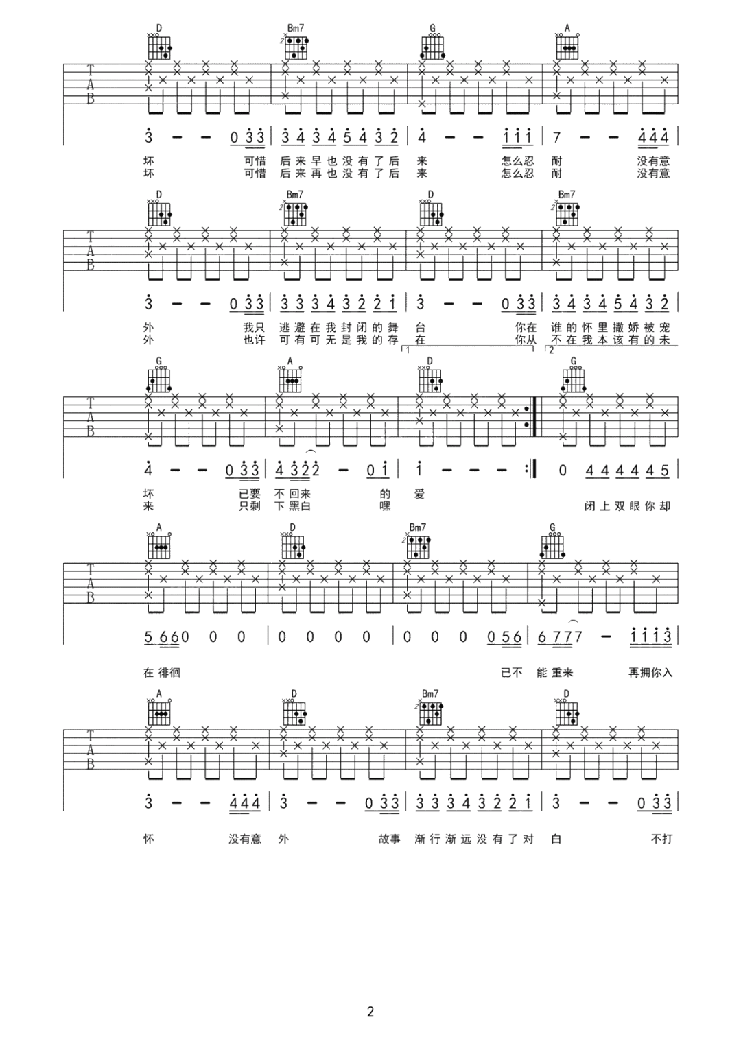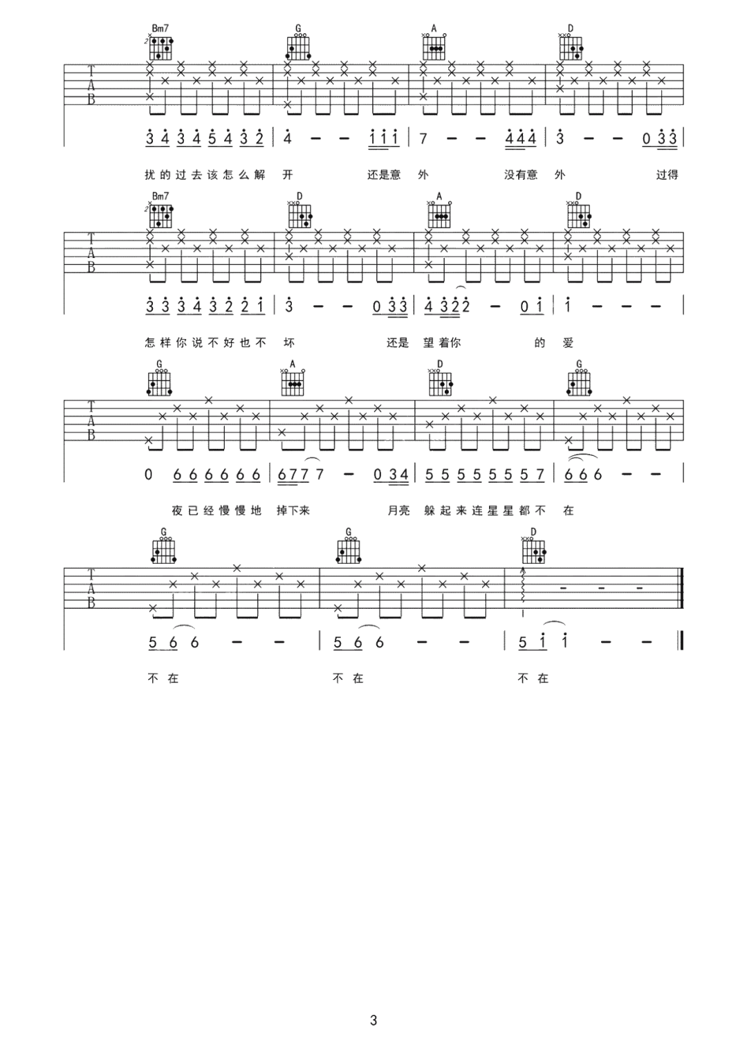 《蔡徐坤《没有意外吉他谱》(C调)》内容来自于互联网,不能保证内容的准确性与完整性,仅供学习交流欣赏,请勿用于其它用途,内容版权归原作者及来源网站所有,如有侵犯到您的权益请来信告知,我们将及时删除。