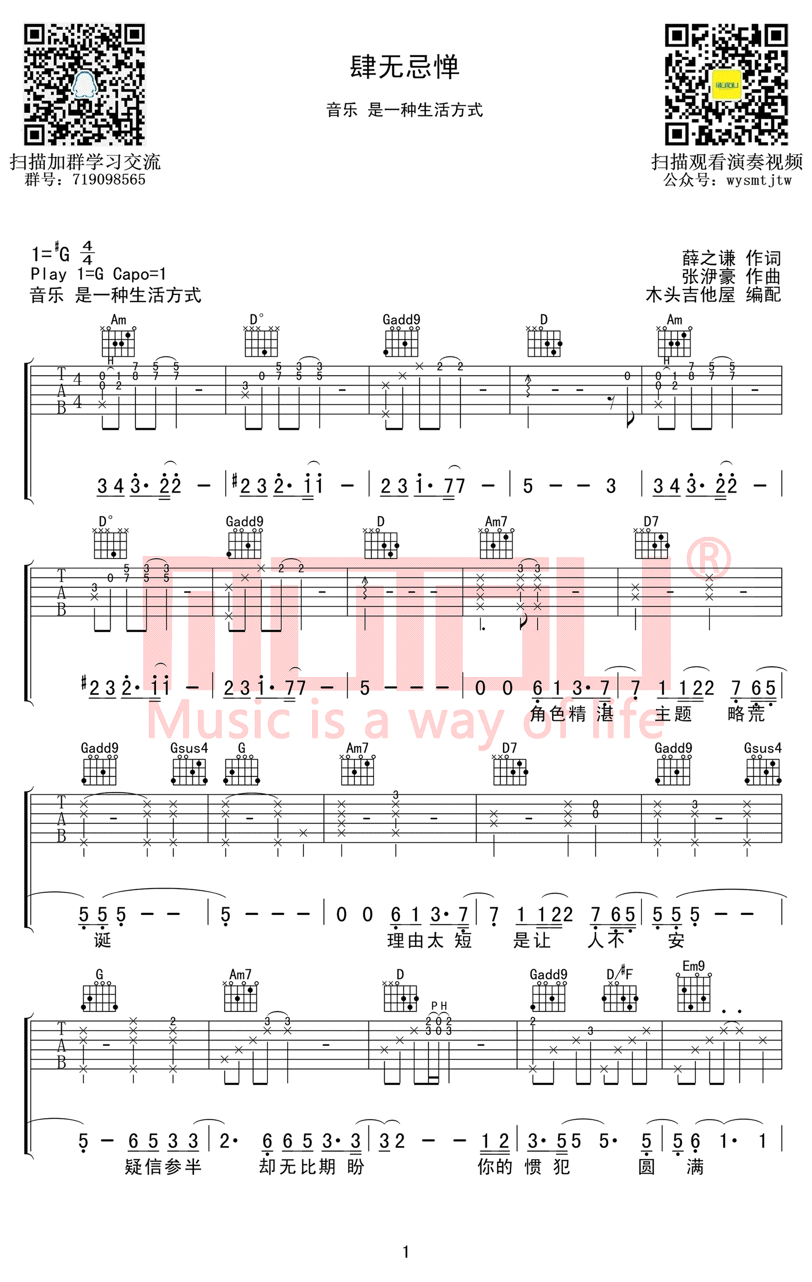 《薛之谦《肆无忌惮吉他谱》(C调)》内容来自于互联网,不能保证内容的准确性与完整性,仅供学习交流欣赏,请勿用于其它用途,内容版权归原作者及来源网站所有,如有侵犯到您的权益请来信告知,我们将及时删除。
