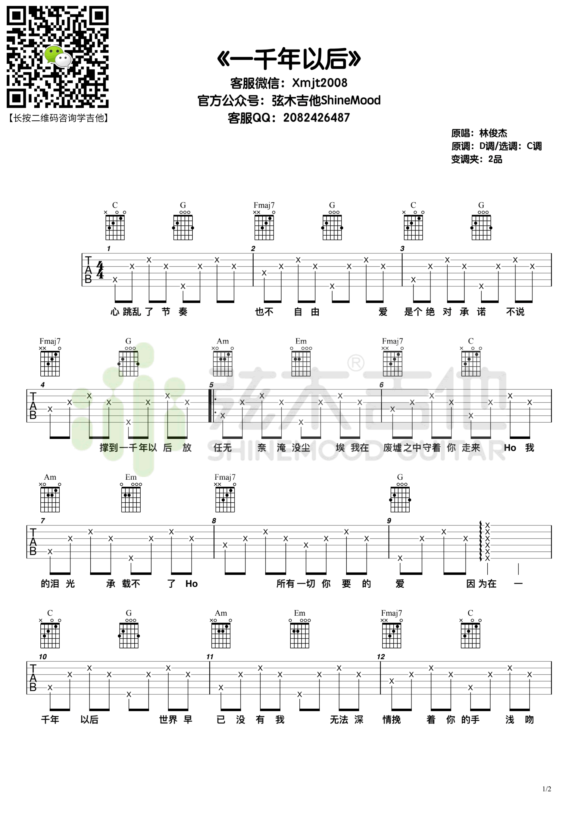 《林俊杰《一千年以后吉他谱》(C调)》内容来自于互联网,不能保证内容的准确性与完整性,仅供学习交流欣赏,请勿用于其它用途,内容版权归原作者及来源网站所有,如有侵犯到您的权益请来信告知,我们将及时删除。