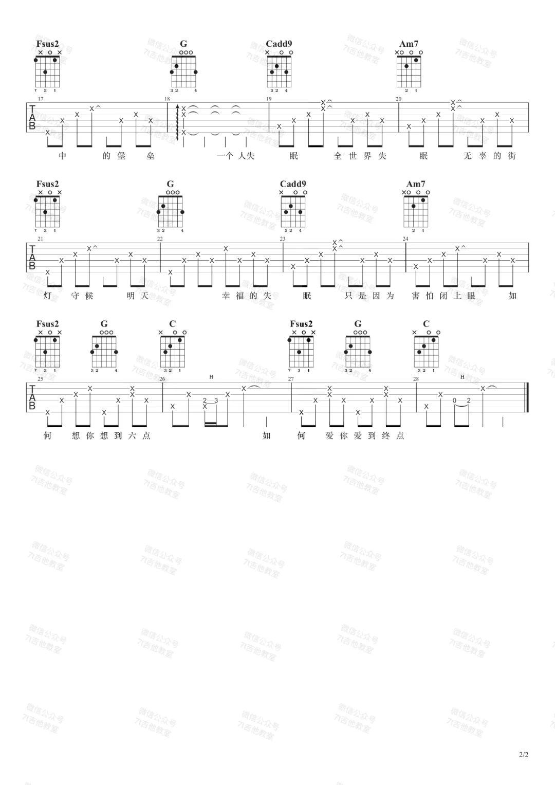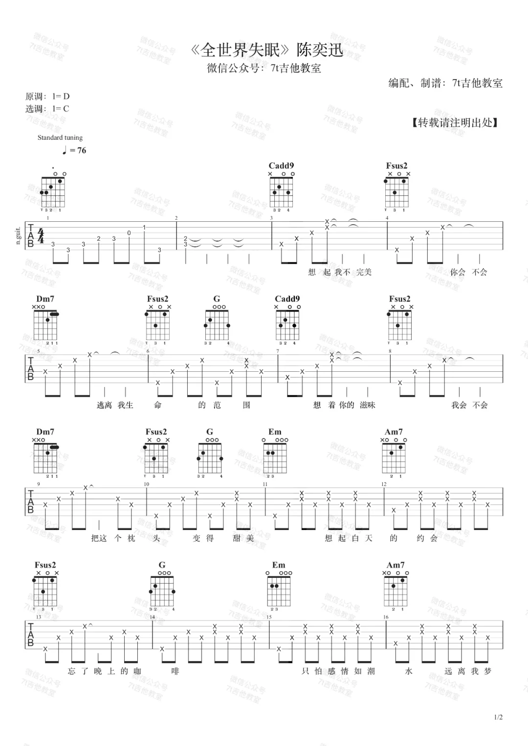 《陈奕迅《全世界失眠吉他谱》(C调)》内容来自于互联网,不能保证内容的准确性与完整性,仅供学习交流欣赏,请勿用于其它用途,内容版权归原作者及来源网站所有,如有侵犯到您的权益请来信告知,我们将及时删除。