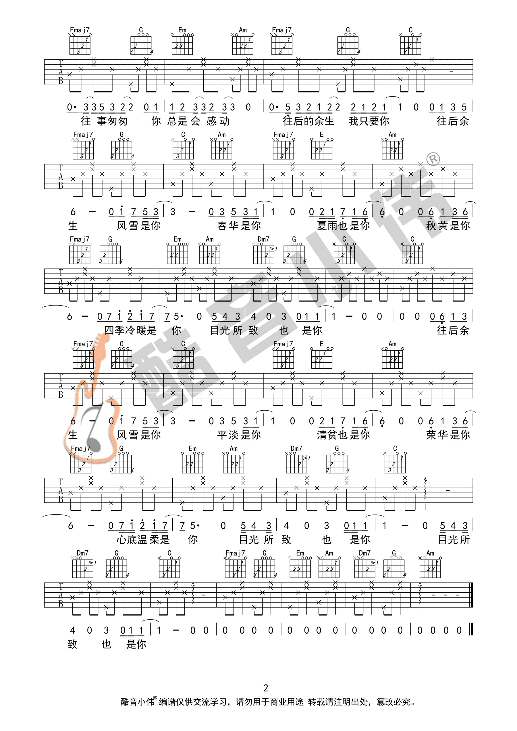 《C调简单版弹唱六线谱《马良《往后余生》吉他谱》(C调)》内容来自于互联网,不能保证内容的准确性与完整性,仅供学习交流欣赏,请勿用于其它用途,内容版权归原作者及来源网站所有,如有侵犯到您的权益请来信告知,我们将及时删除。
