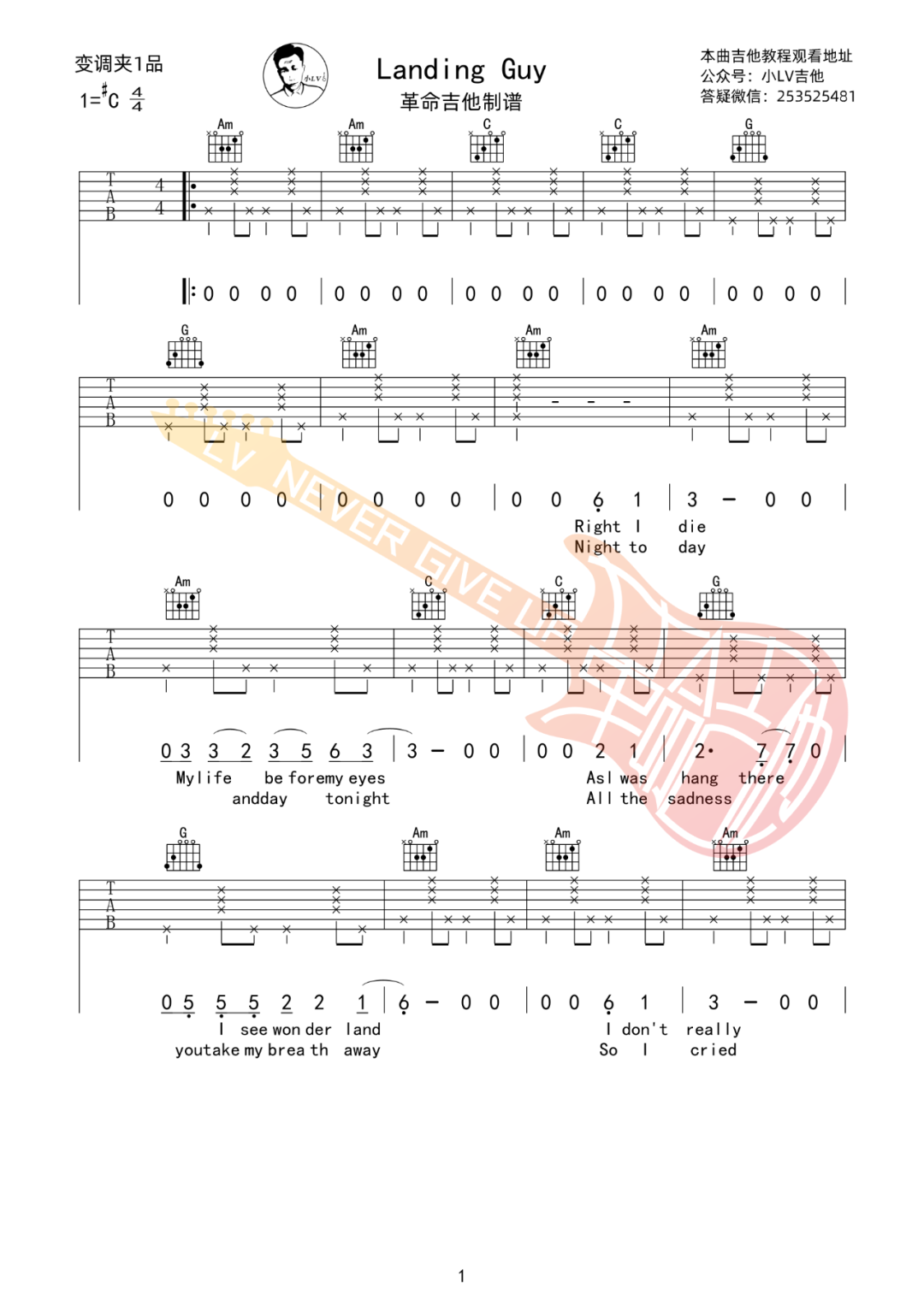 《刘昊霖《Landing Guy吉他谱》(G调)》内容来自于互联网,不能保证内容的准确性与完整性,仅供学习交流欣赏,请勿用于其它用途,内容版权归原作者及来源网站所有,如有侵犯到您的权益请来信告知,我们将及时删除。