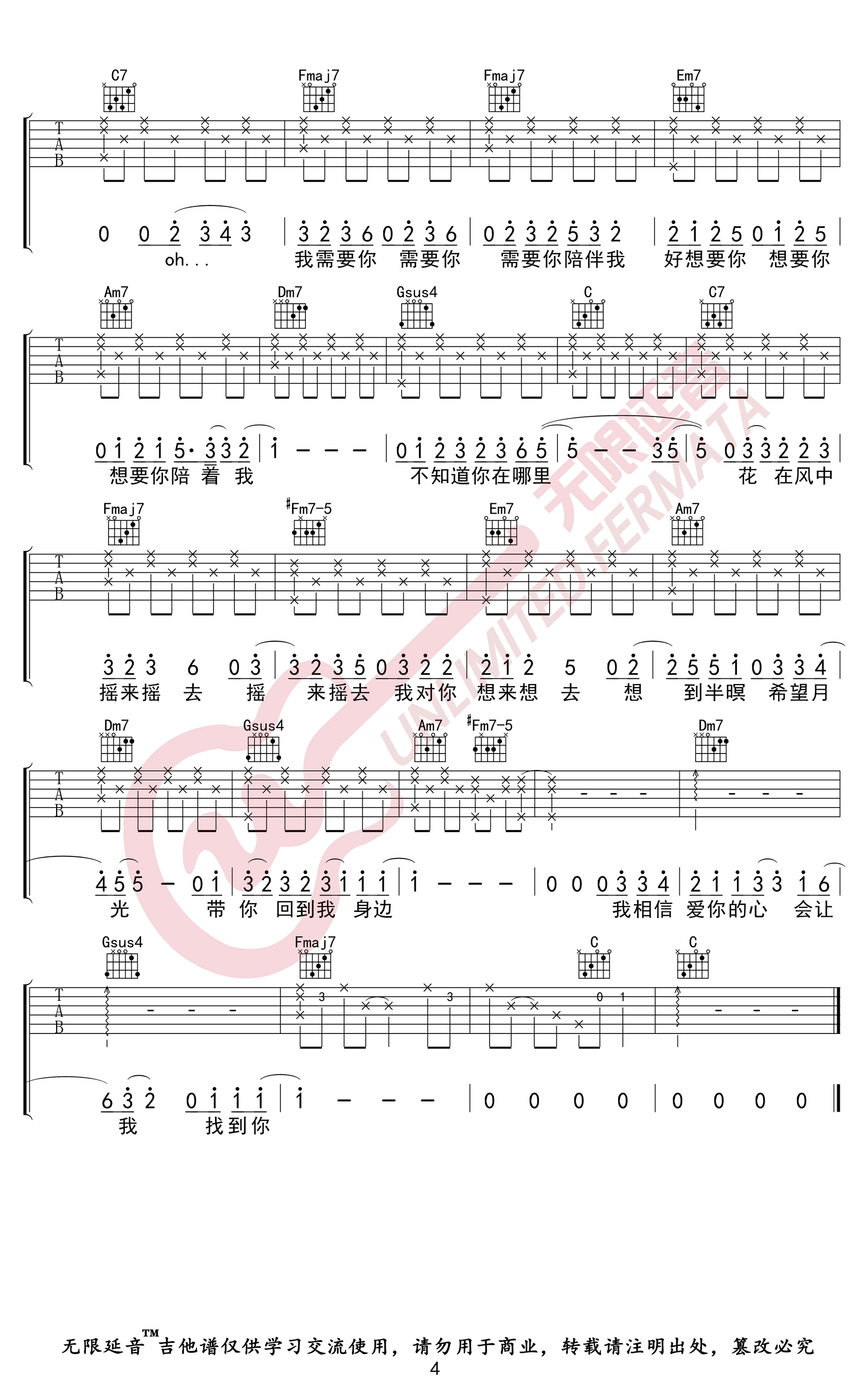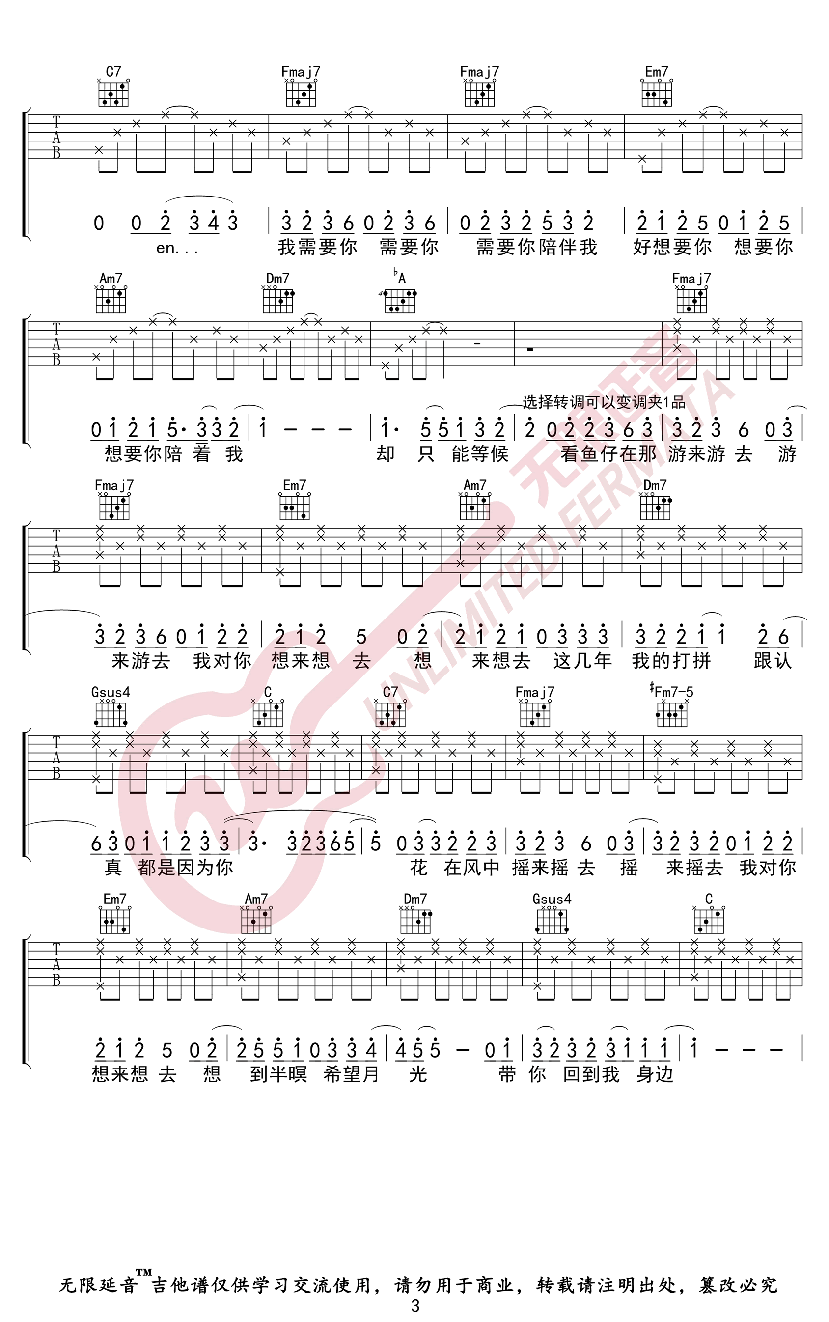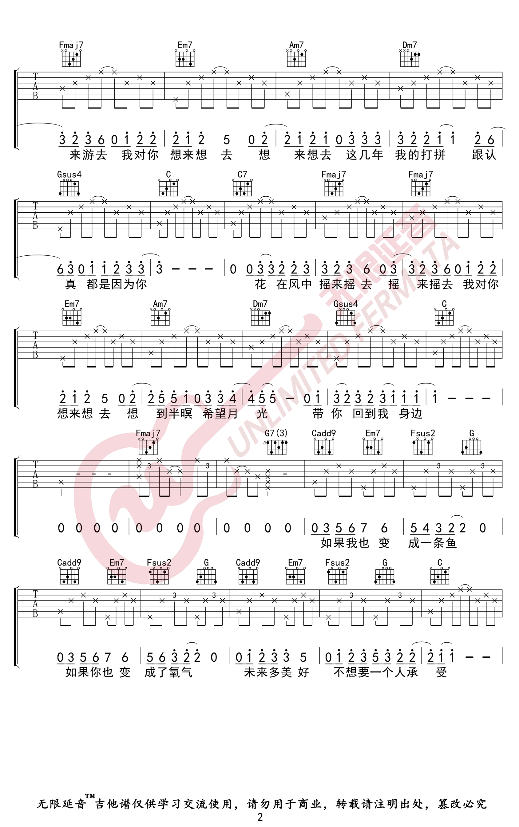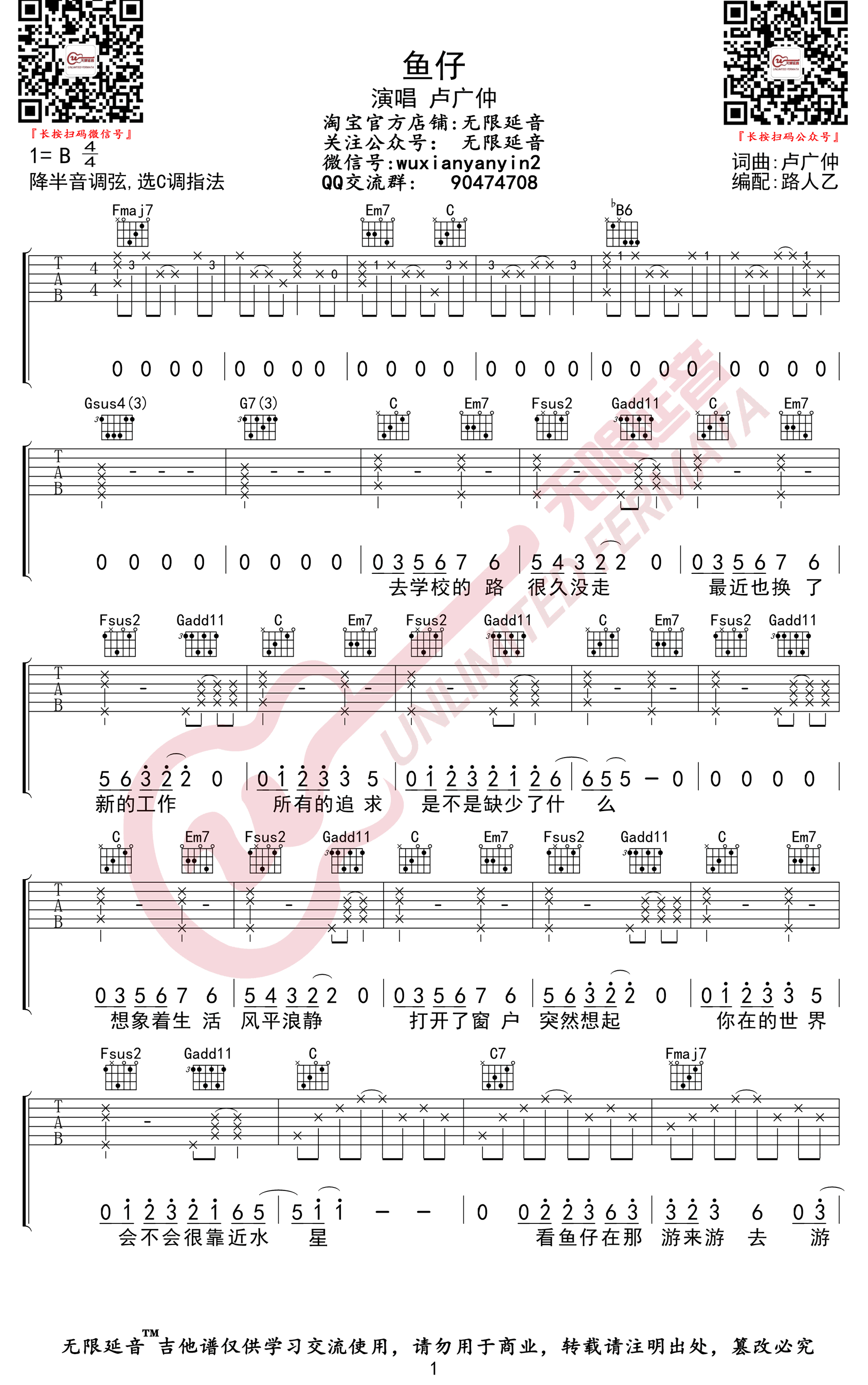 《卢广仲《鱼仔吉他谱》(C调)》内容来自于互联网,不能保证内容的准确性与完整性,仅供学习交流欣赏,请勿用于其它用途,内容版权归原作者及来源网站所有,如有侵犯到您的权益请来信告知,我们将及时删除。