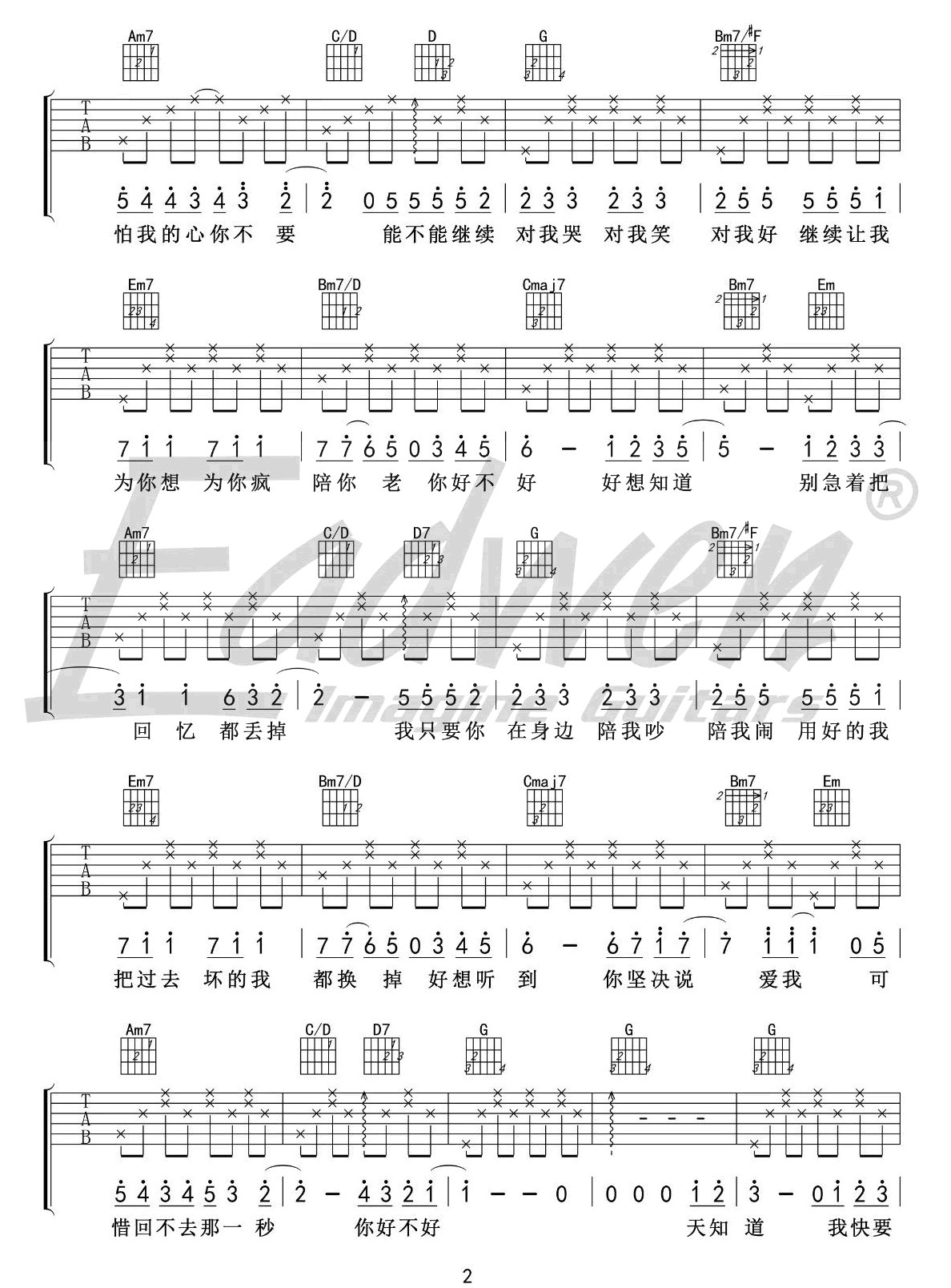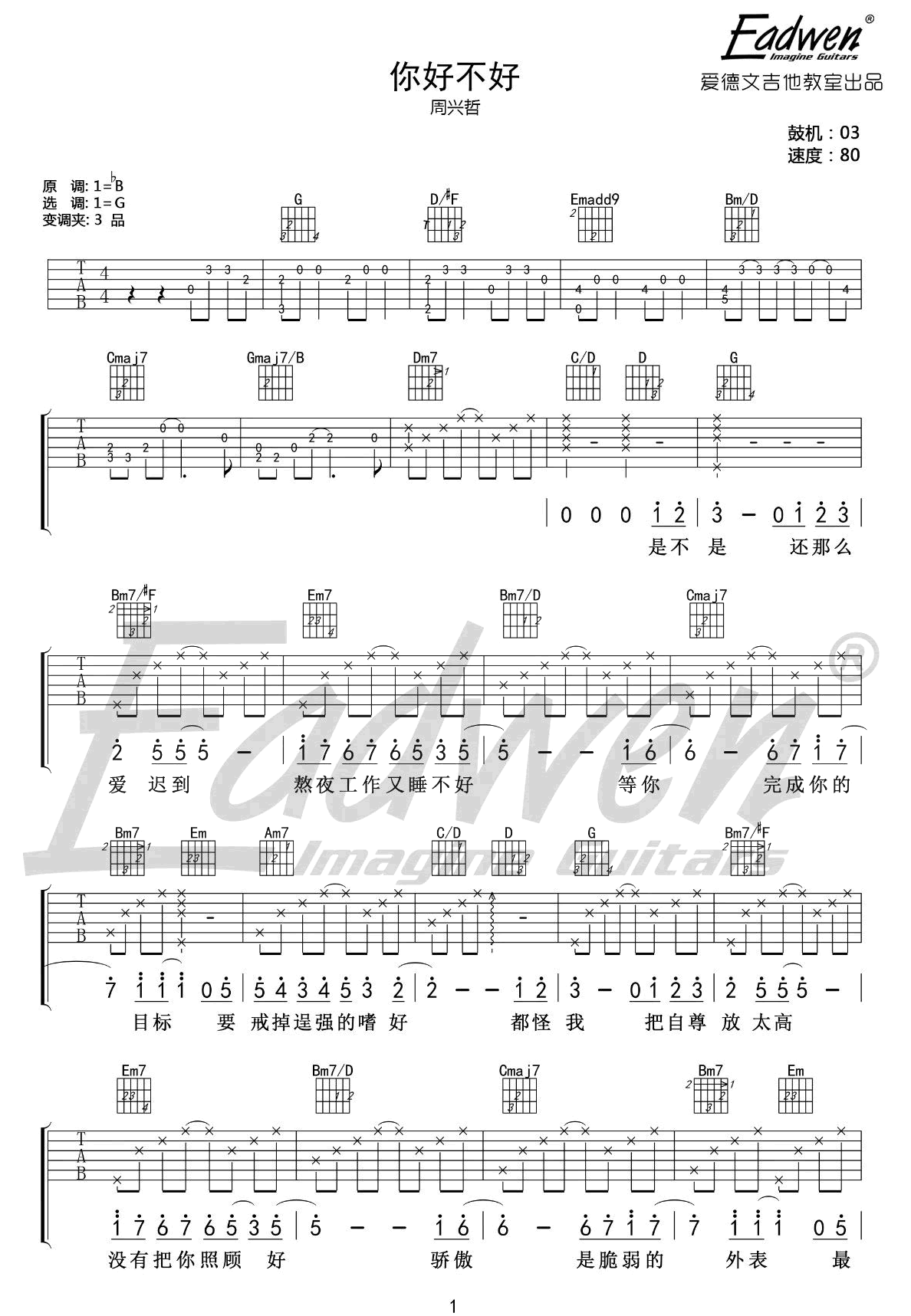 《周兴哲《你好不好吉他谱》(G调)》内容来自于互联网,不能保证内容的准确性与完整性,仅供学习交流欣赏,请勿用于其它用途,内容版权归原作者及来源网站所有,如有侵犯到您的权益请来信告知,我们将及时删除。