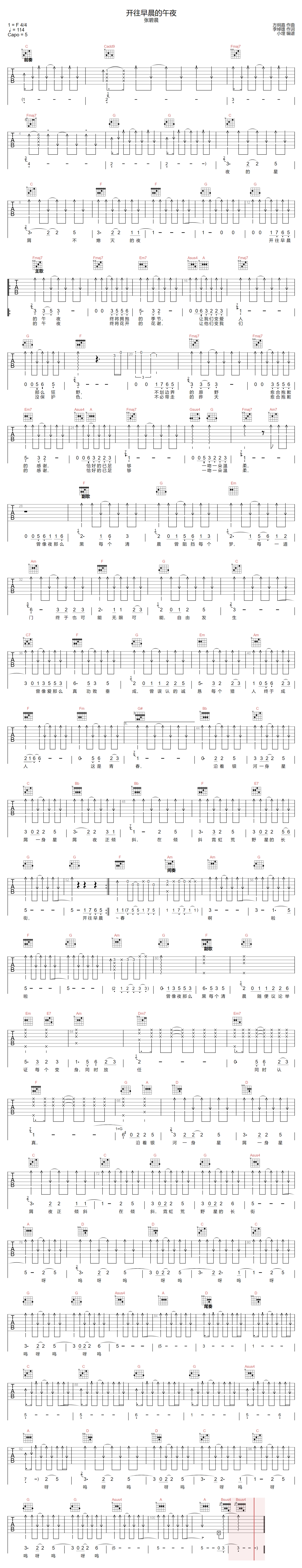 《张碧晨《开往早晨的午夜吉他谱》(G调)》内容来自于互联网,不能保证内容的准确性与完整性,仅供学习交流欣赏,请勿用于其它用途,内容版权归原作者及来源网站所有,如有侵犯到您的权益请来信告知,我们将及时删除。