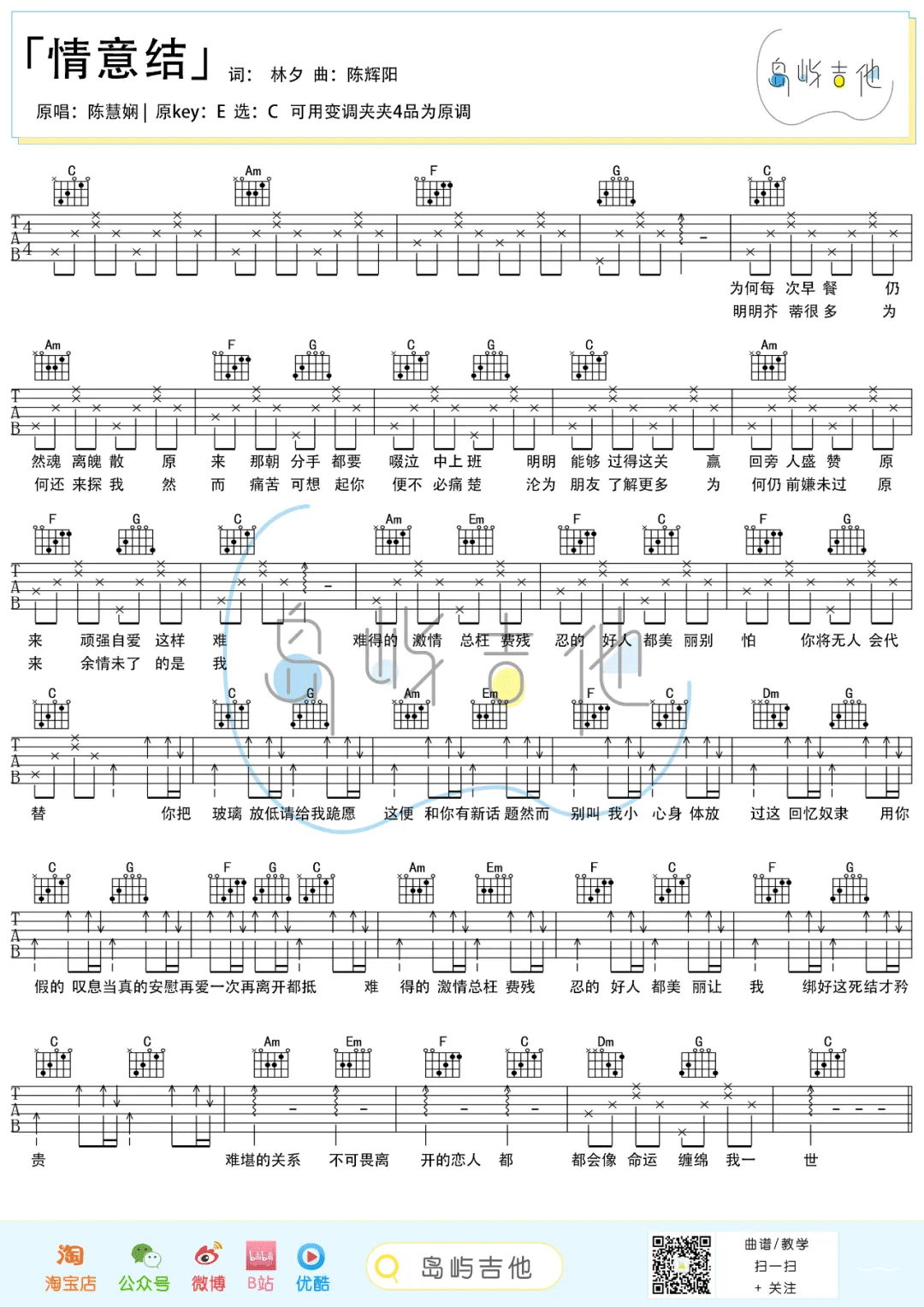 《陈慧娴/邓岳章《情意结吉他谱》(C调)》内容来自于互联网,不能保证内容的准确性与完整性,仅供学习交流欣赏,请勿用于其它用途,内容版权归原作者及来源网站所有,如有侵犯到您的权益请来信告知,我们将及时删除。