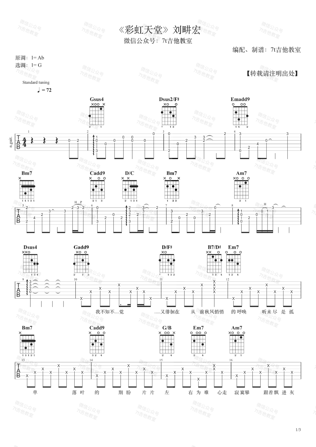 《刘畊宏《彩虹天堂吉他谱》(C调)》内容来自于互联网,不能保证内容的准确性与完整性,仅供学习交流欣赏,请勿用于其它用途,内容版权归原作者及来源网站所有,如有侵犯到您的权益请来信告知,我们将及时删除。