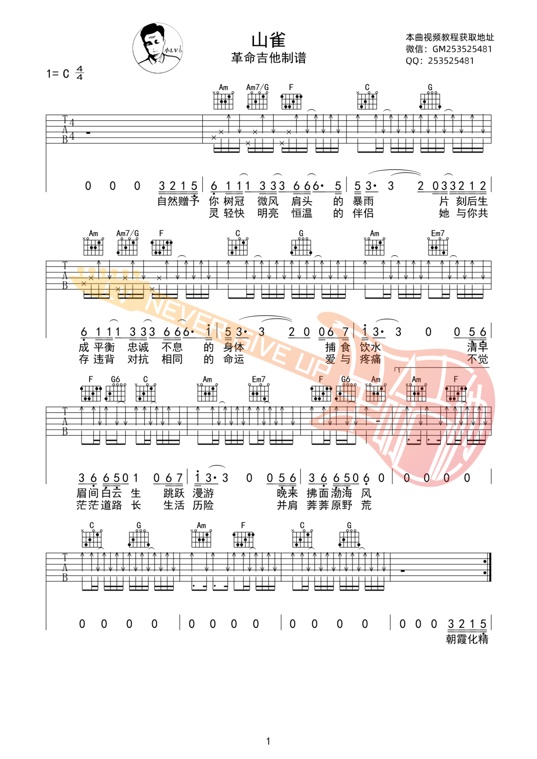 《万能青年旅店《山雀吉他谱》(G调)》内容来自于互联网,不能保证内容的准确性与完整性,仅供学习交流欣赏,请勿用于其它用途,内容版权归原作者及来源网站所有,如有侵犯到您的权益请来信告知,我们将及时删除。