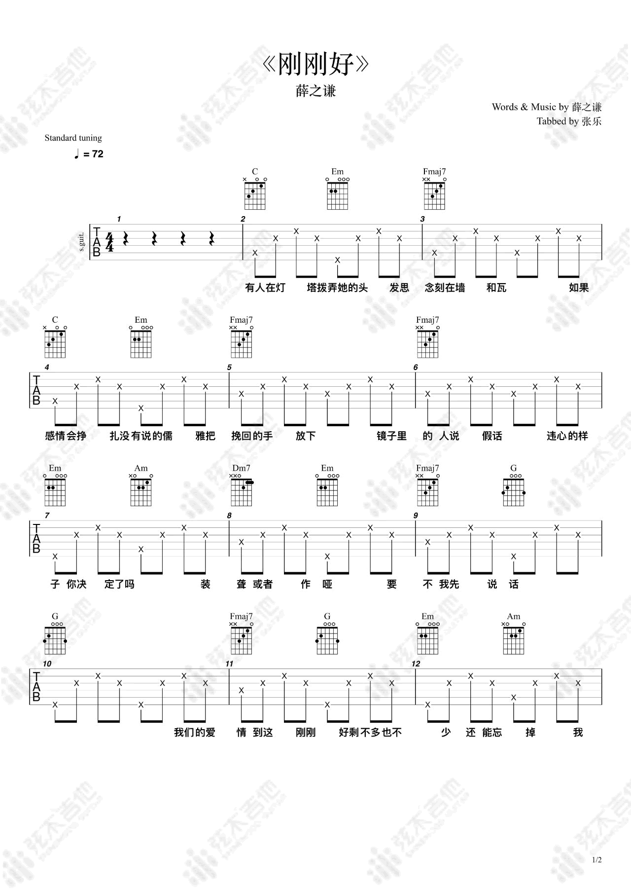 《薛之谦《刚刚好吉他谱》(A调)》内容来自于互联网,不能保证内容的准确性与完整性,仅供学习交流欣赏,请勿用于其它用途,内容版权归原作者及来源网站所有,如有侵犯到您的权益请来信告知,我们将及时删除。
