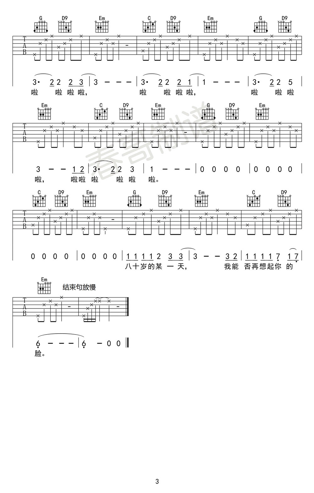 《花粥《二十岁的某一天吉他谱》(C调)》内容来自于互联网,不能保证内容的准确性与完整性,仅供学习交流欣赏,请勿用于其它用途,内容版权归原作者及来源网站所有,如有侵犯到您的权益请来信告知,我们将及时删除。